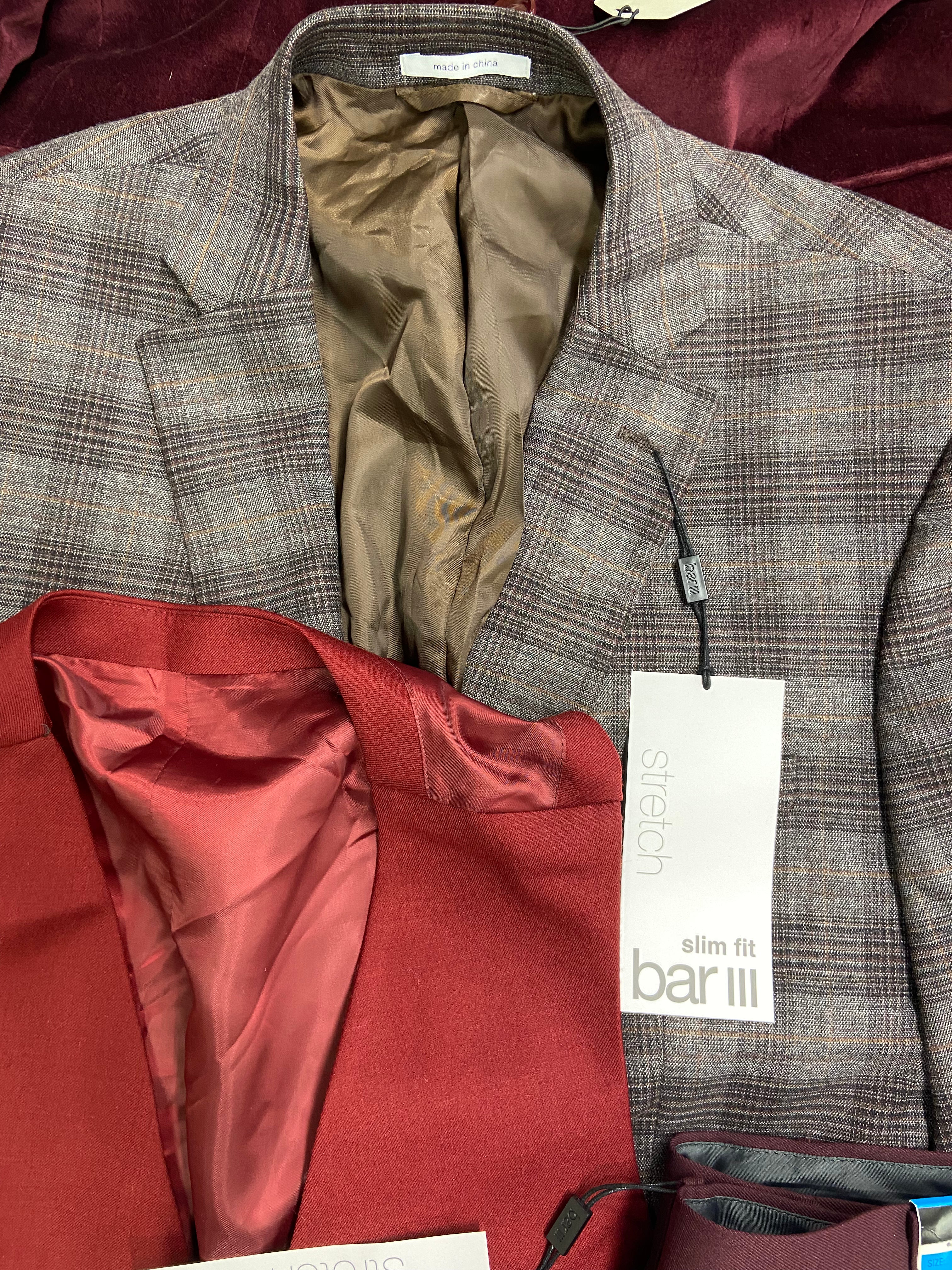 | Yes | 628735253128 | BAR III | Bar III Mens Slim-Fit Burgundy Solid Wine 42S | 1 | $425.00 | 42 SHORT | $425.00 |