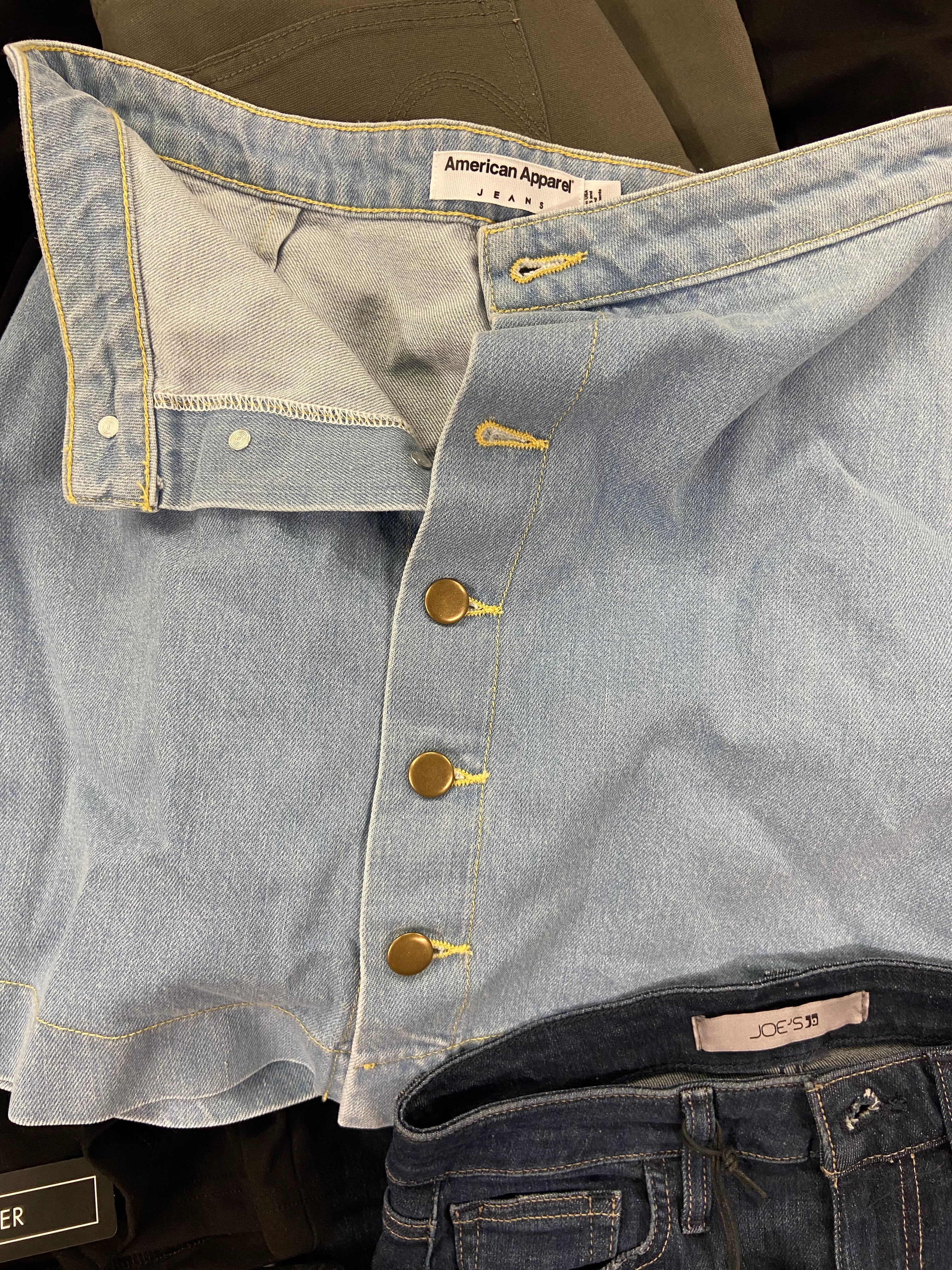 | Yes | 00191675066887, | AMERICAN APPAREL | AM BttnFrntDnmSkirt LGT WSH L | $ 58.00 | L | 1 | $58.00 | |