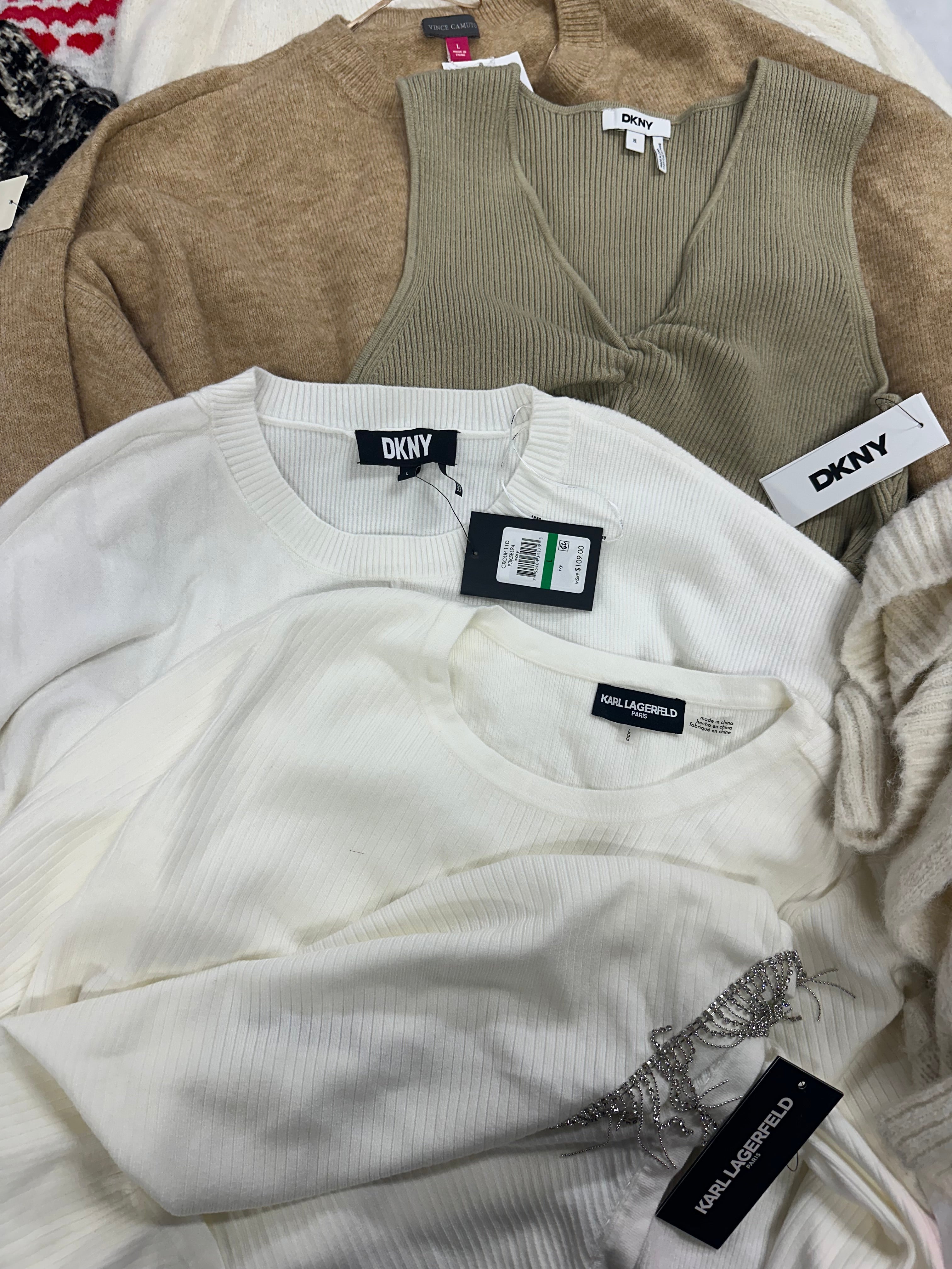 | Yes | 755404341753 | DKNY/G-III APPAREL GROUP | DKNY Womens Mixed-Stitch Asymmetri Ivory L | $109.00 | LARGE | 1 | $109.00 | |