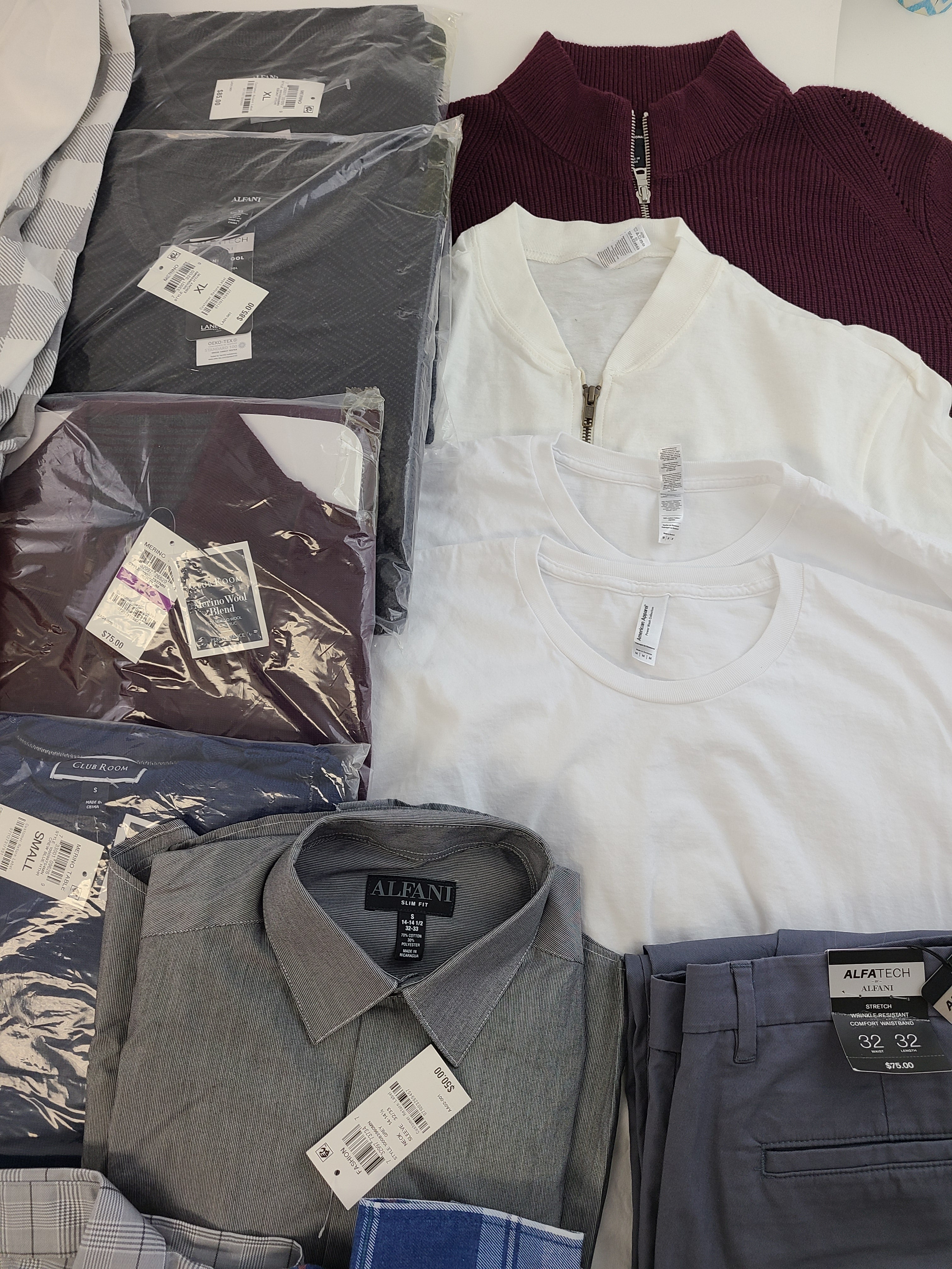 | Fashion | Shelf Pulls | 732997737347 | Mens | MMG-ALFANI | Alfani Mens AlfaTech Modern Hairline Grey 14-14 12 32-33 | $50.00 | 1 | 50 | SMALL S/S | Yes | See Image(s) |