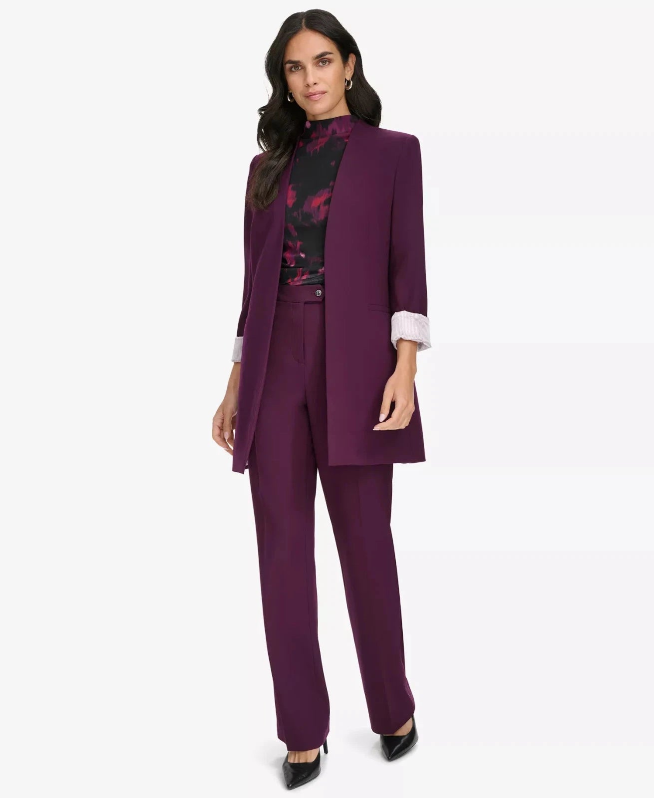 * Calvin Klein Roll Sleeve Open Front Blazer Petite Size 8P aubergine Purple $159