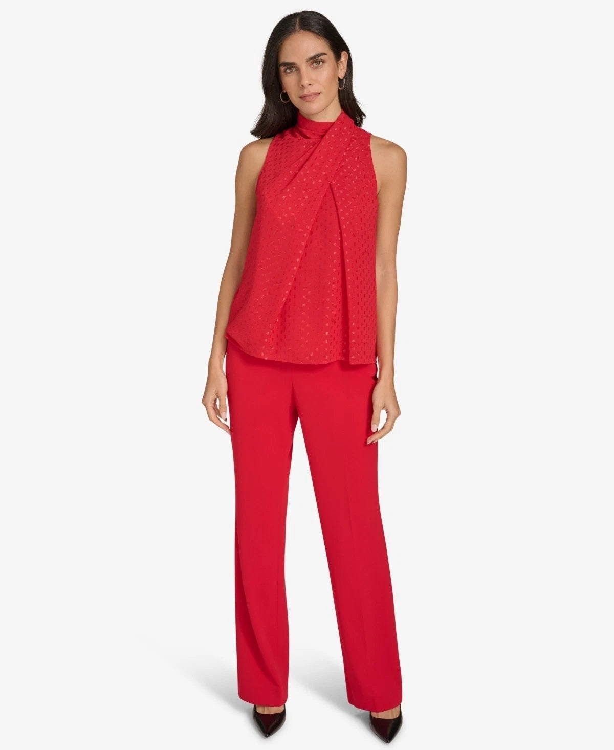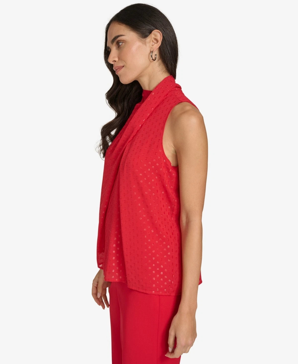 Shimmery metallic clip dots lend a little sparkle to your next career look in this sleeveless top from Calvin Klein.