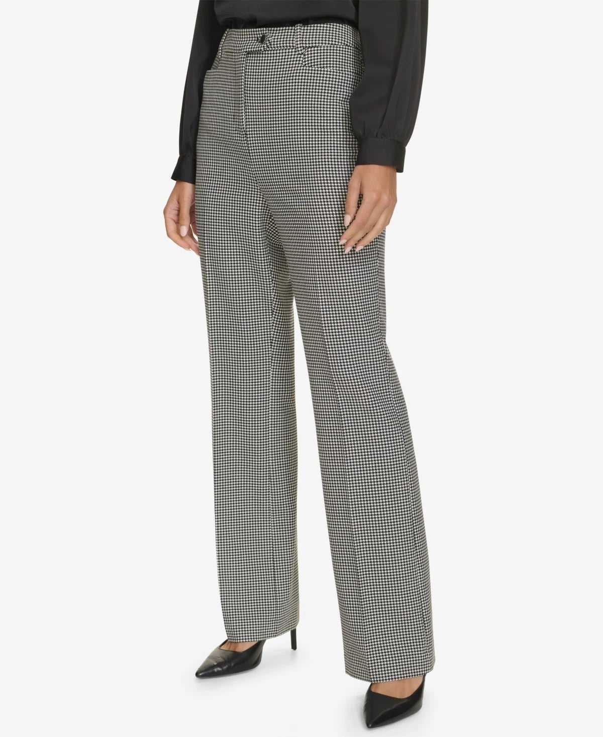 Calvin Klein Women's Straight-Leg Houndstooth Pants Black Size 10 MSRP $109