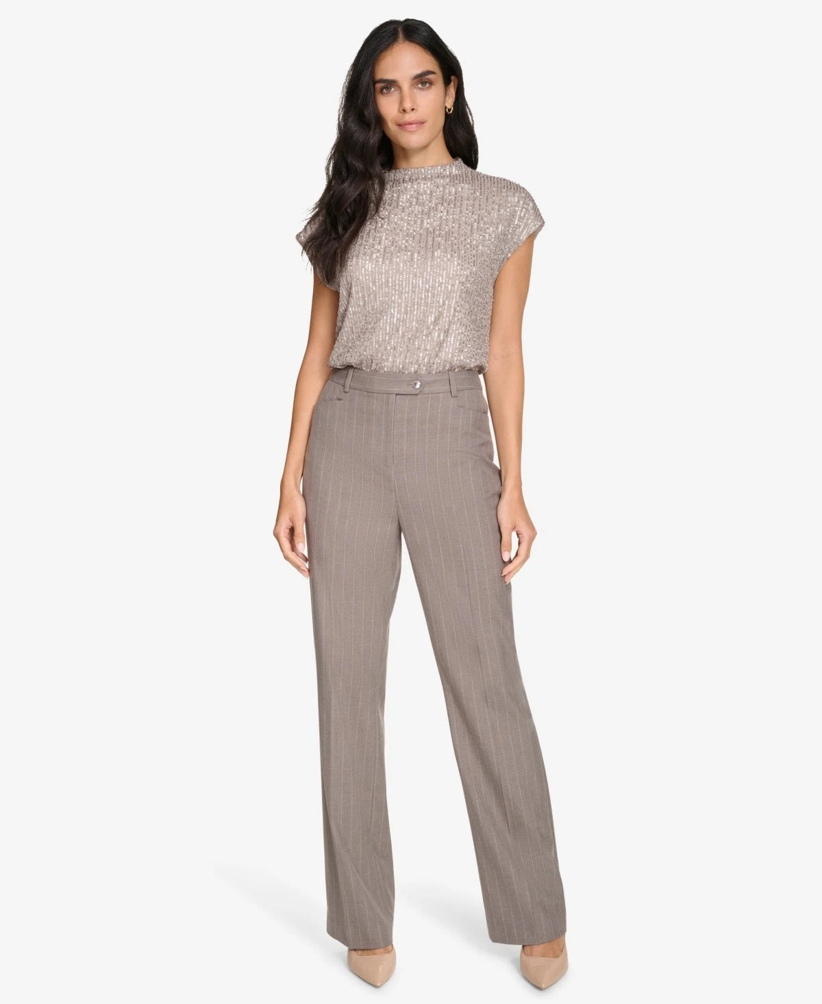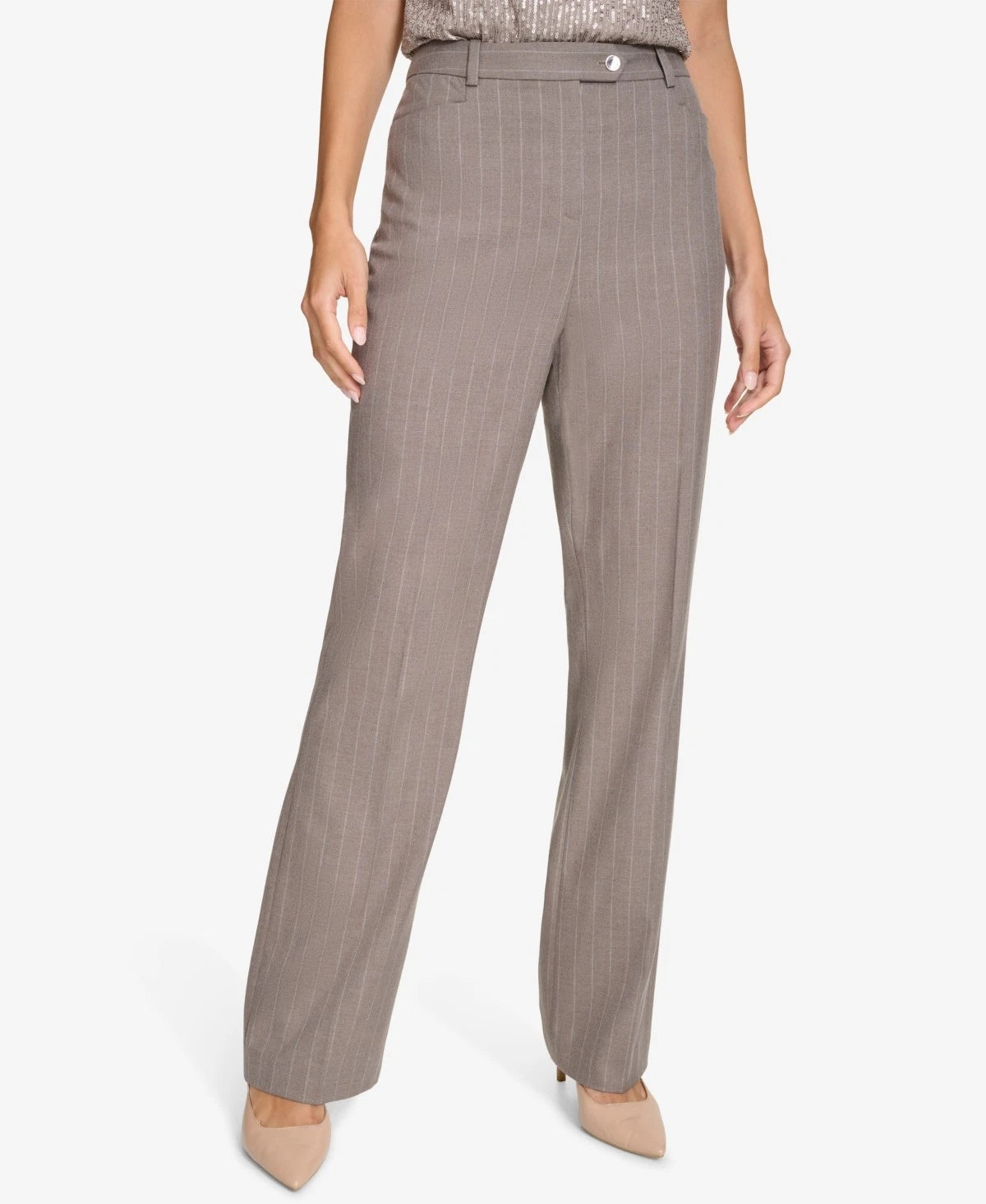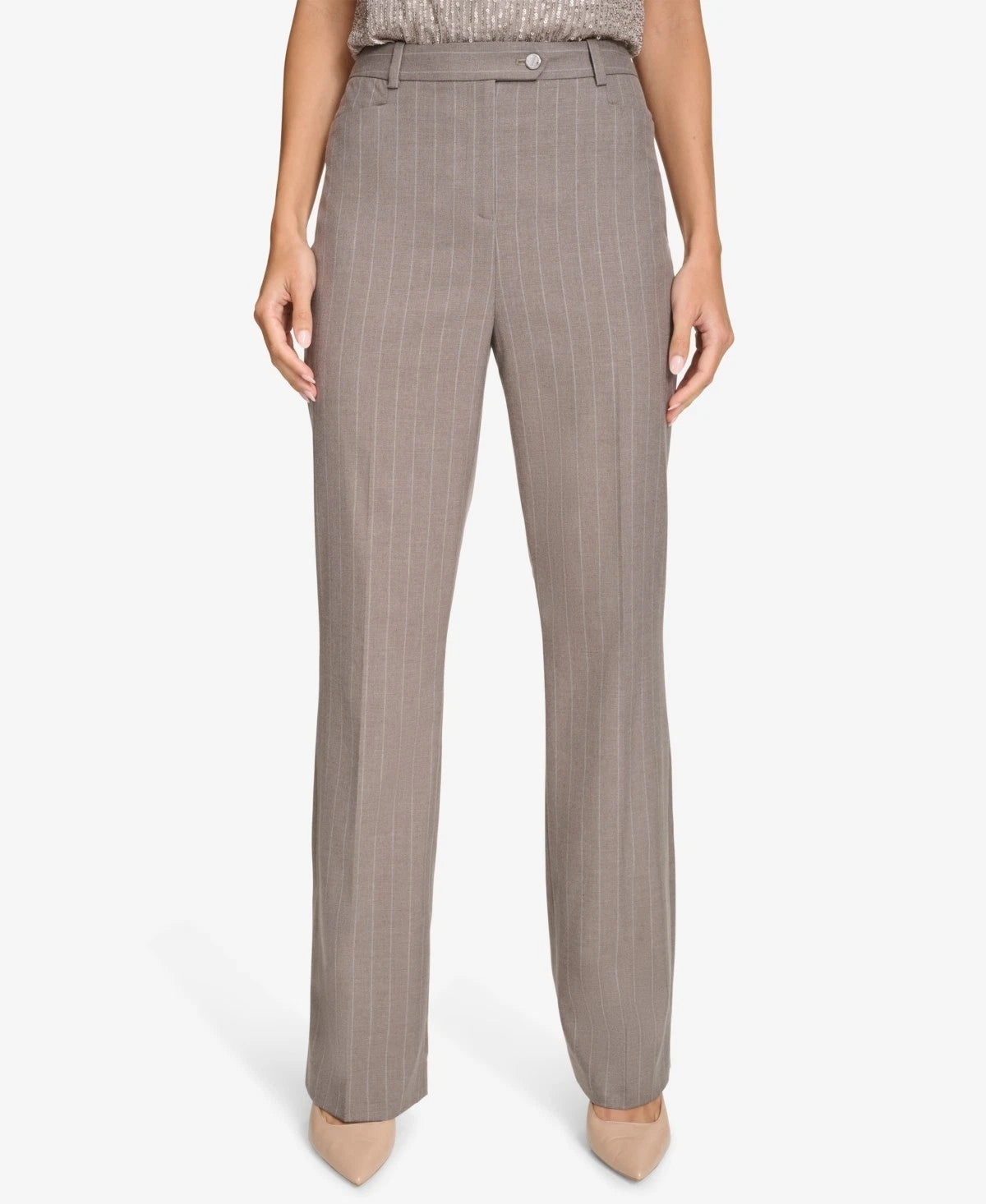 Calvin Klein Women's Straight-Leg Pinstripe Pants Brown Size 12 MSRP $99