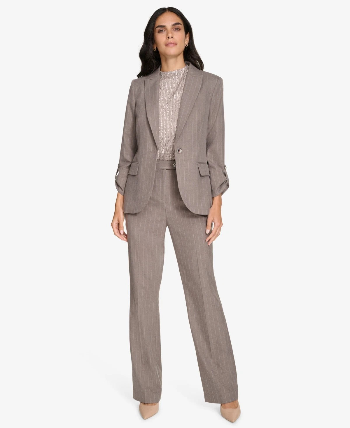 An essential for your weekday collection, these straight-leg pants from Calvin Klein are finished with a classic pinstripe pattern.