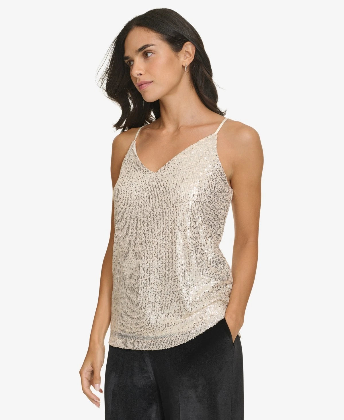 Give your polished looks a touch of glam with this festive sequin camisole from Calvin Klein.