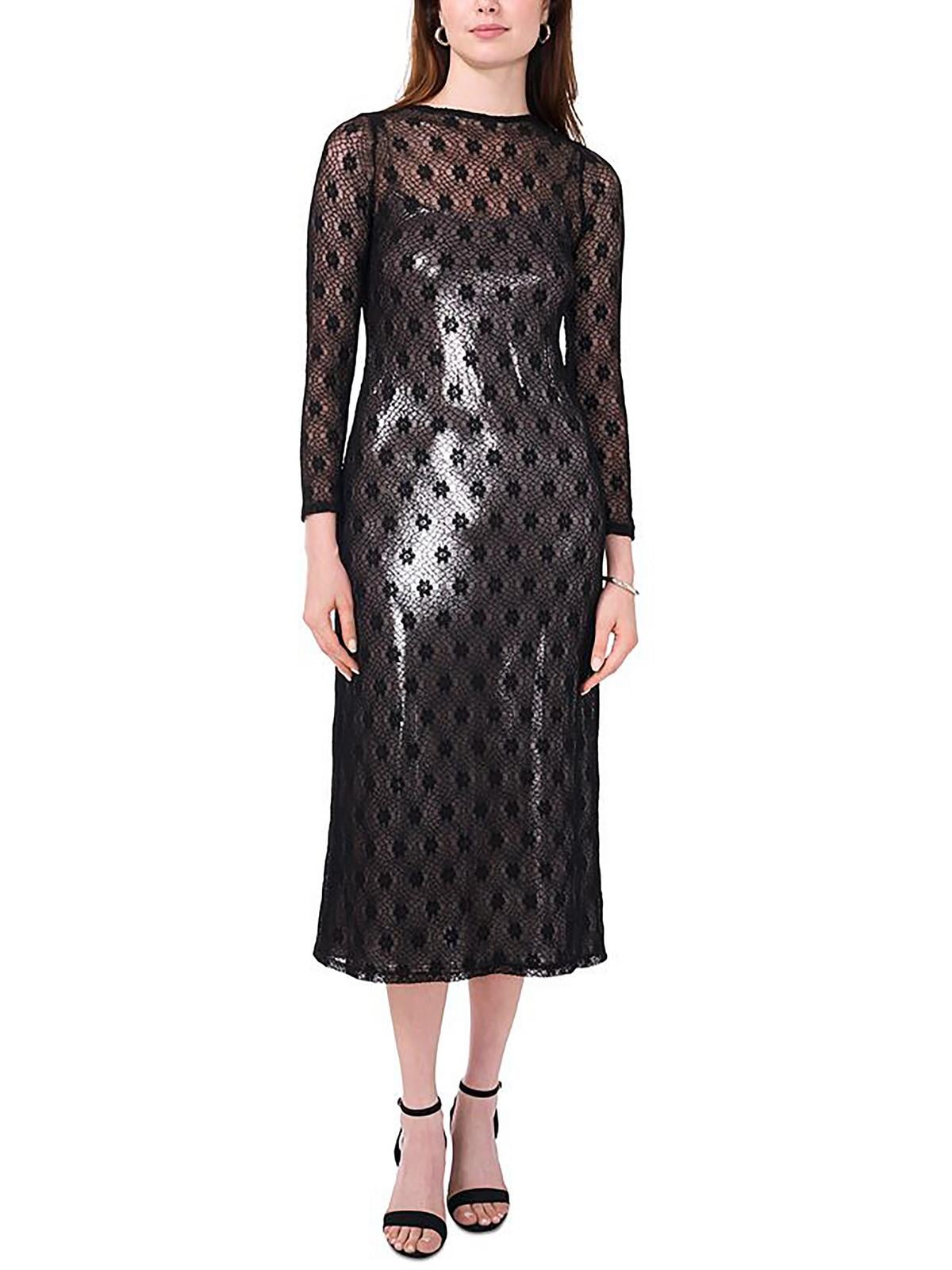CeCe Womens Lace Sheath Dress Size M Black MSRP $99