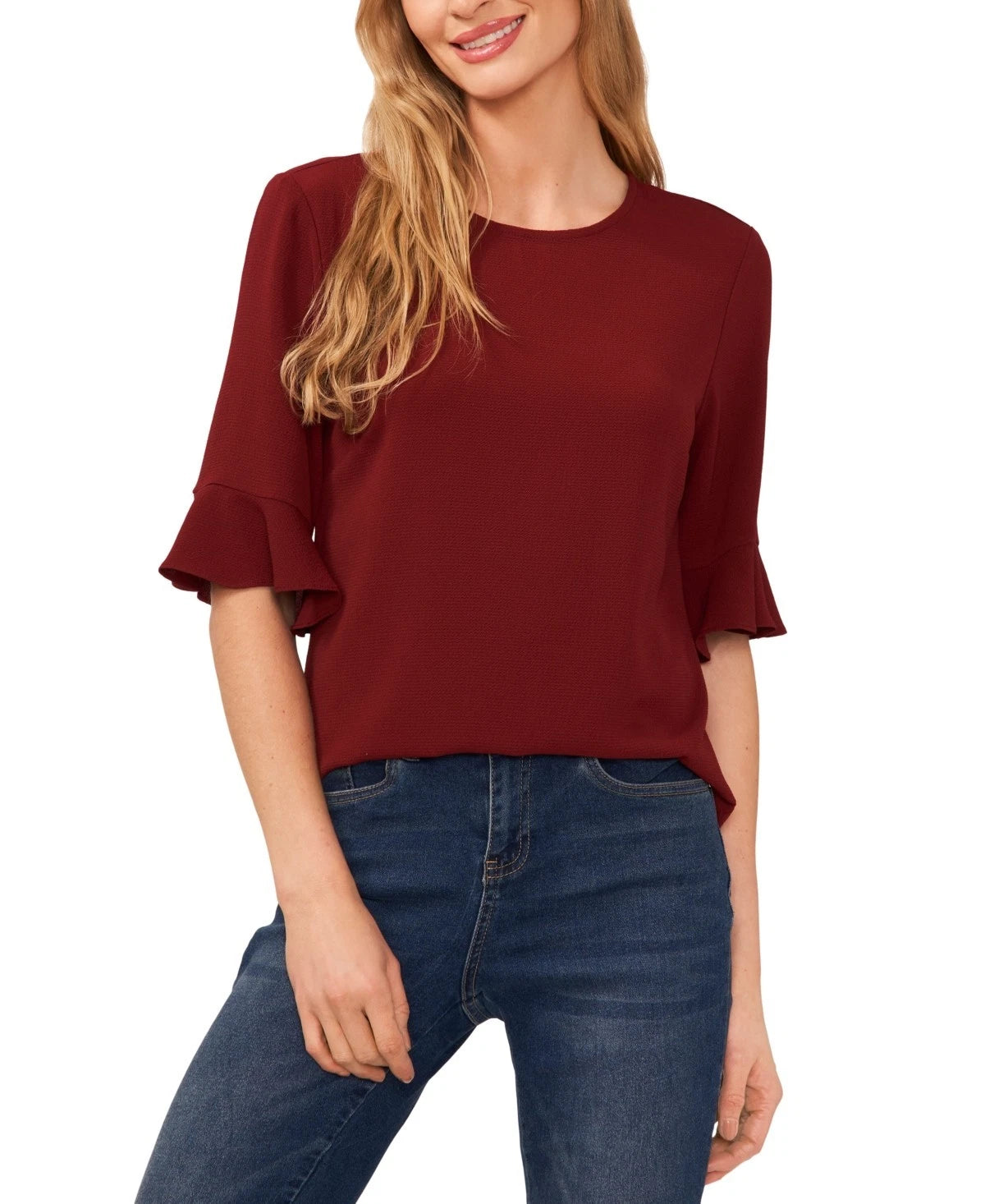 The perfect basic top to elevate your wardrobe, this CeCe crew neck blouse is lightweight and easy to wear. This short sleeve ruff cuff blouse is perfect for all seasons but especially for spring and summer. ABOUT THE BRAND: CeCe is a contemporary lifestyle brand inspired by a romantic take on the everyday, punctuated by taste, wit, and on-the-go flair.
