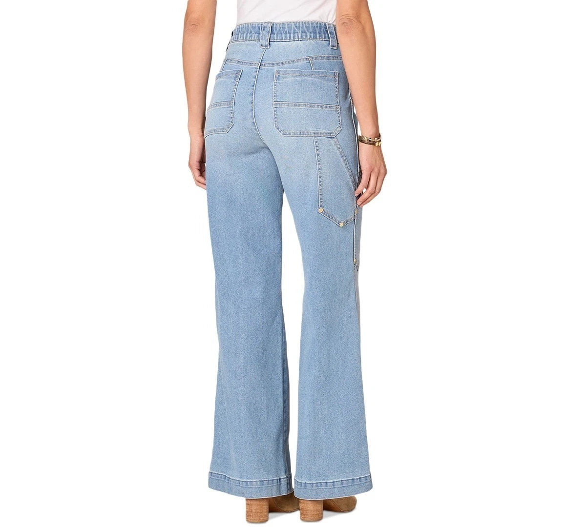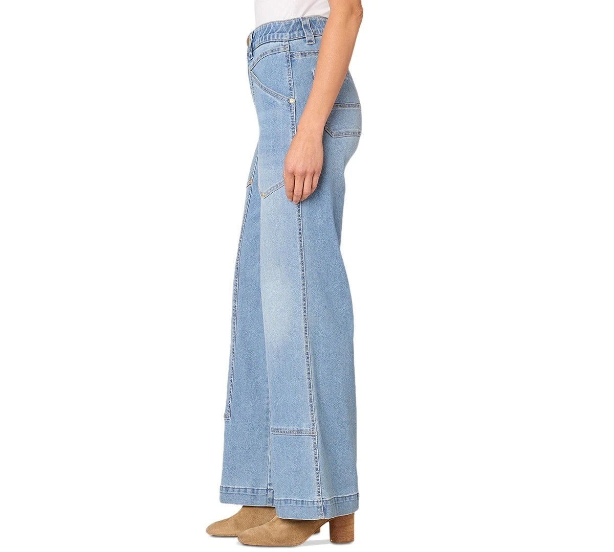 A wide leg silhouette is made even more chic thanks to an elevated utility style, these jeans are a more niche denim style that you need in your collection, by Democracy.