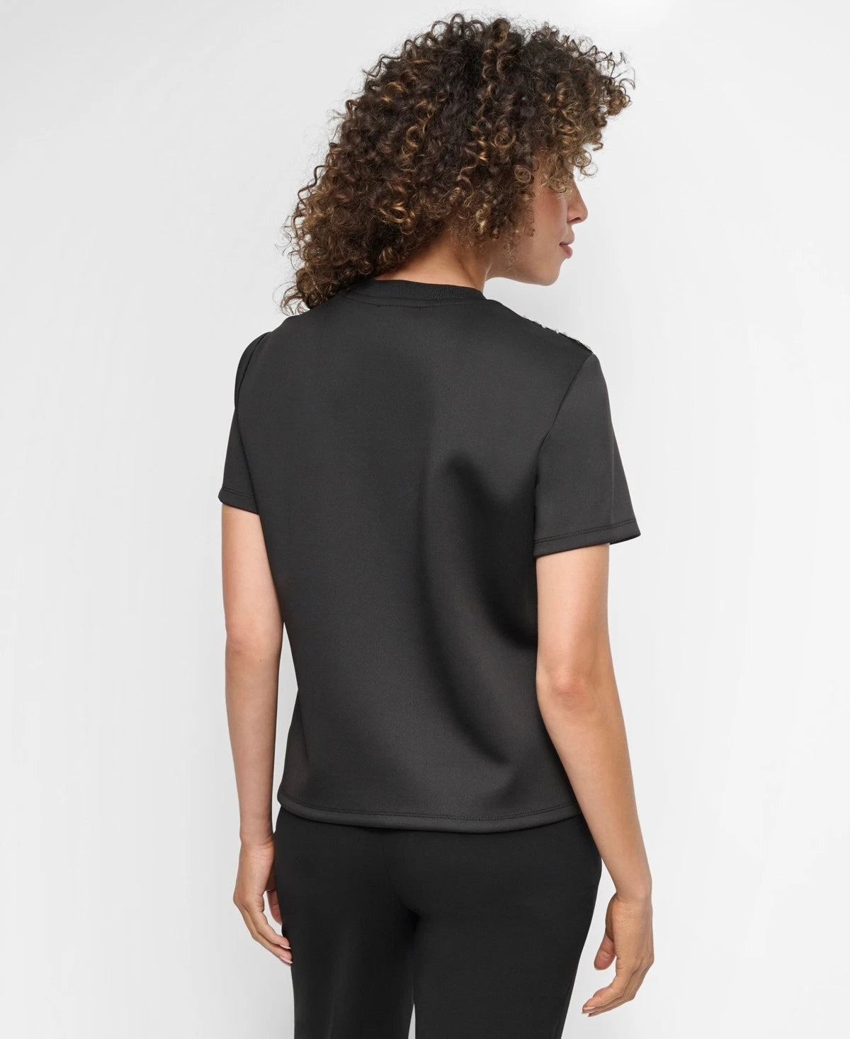 DKNY Women's Crewneck Short-Sleeve Sequin Blouse Black Size S MSRP $89
