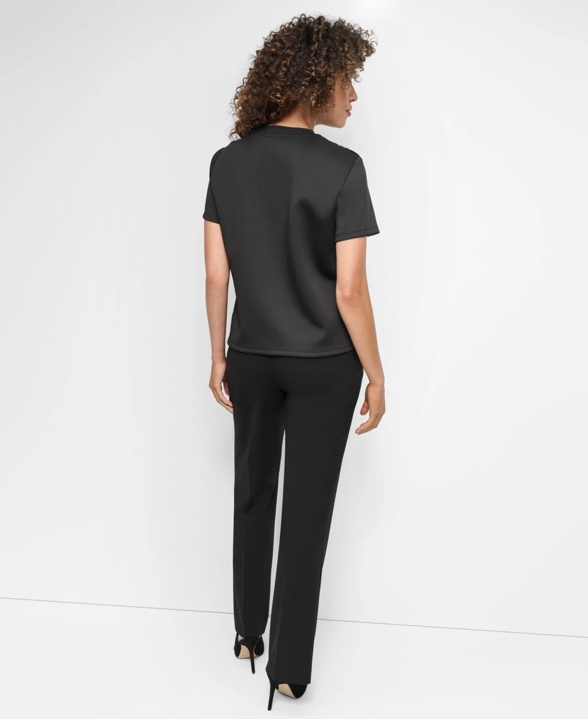 DKNY Women's Crewneck Short-Sleeve Sequin Blouse Black MSRP $89