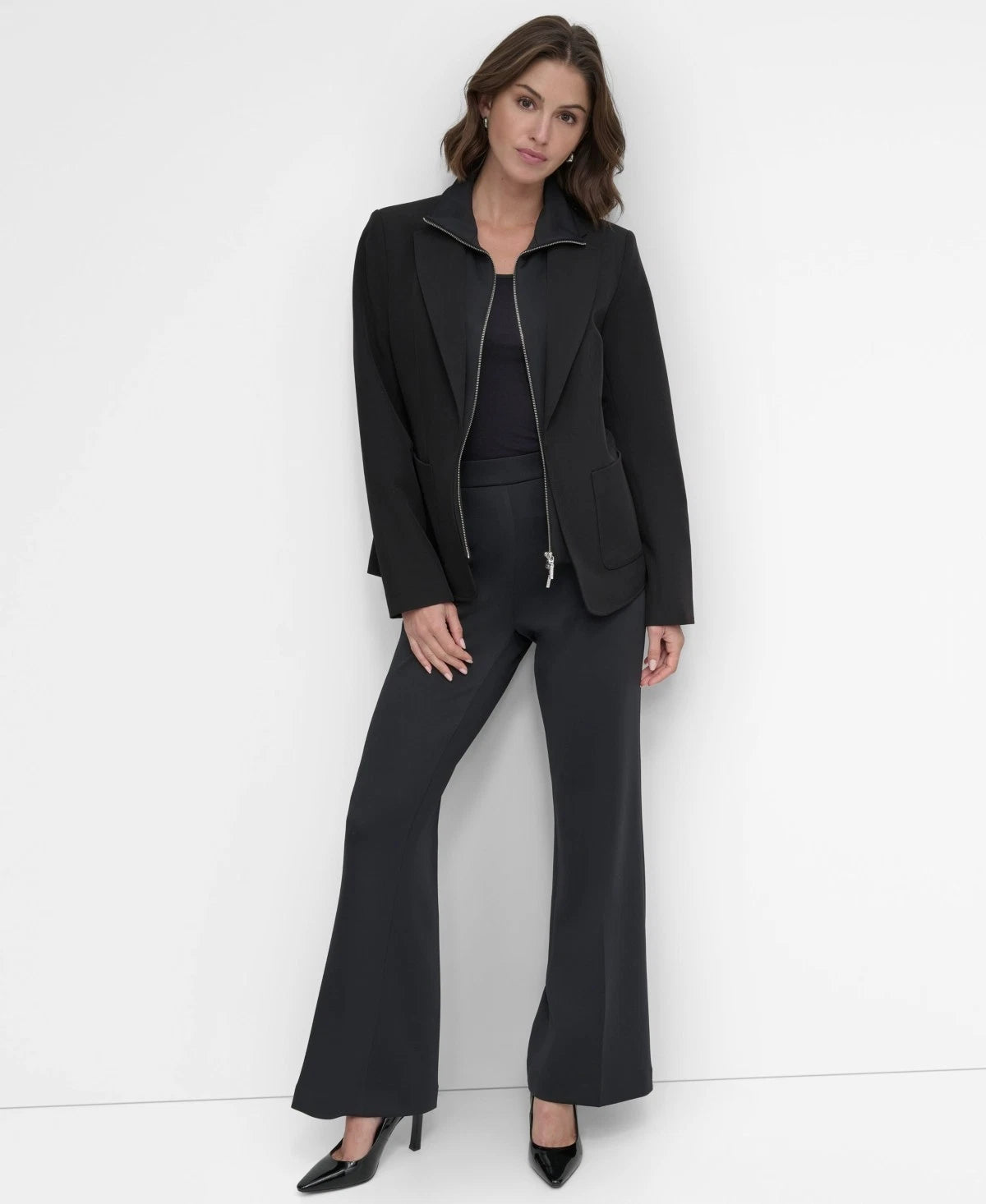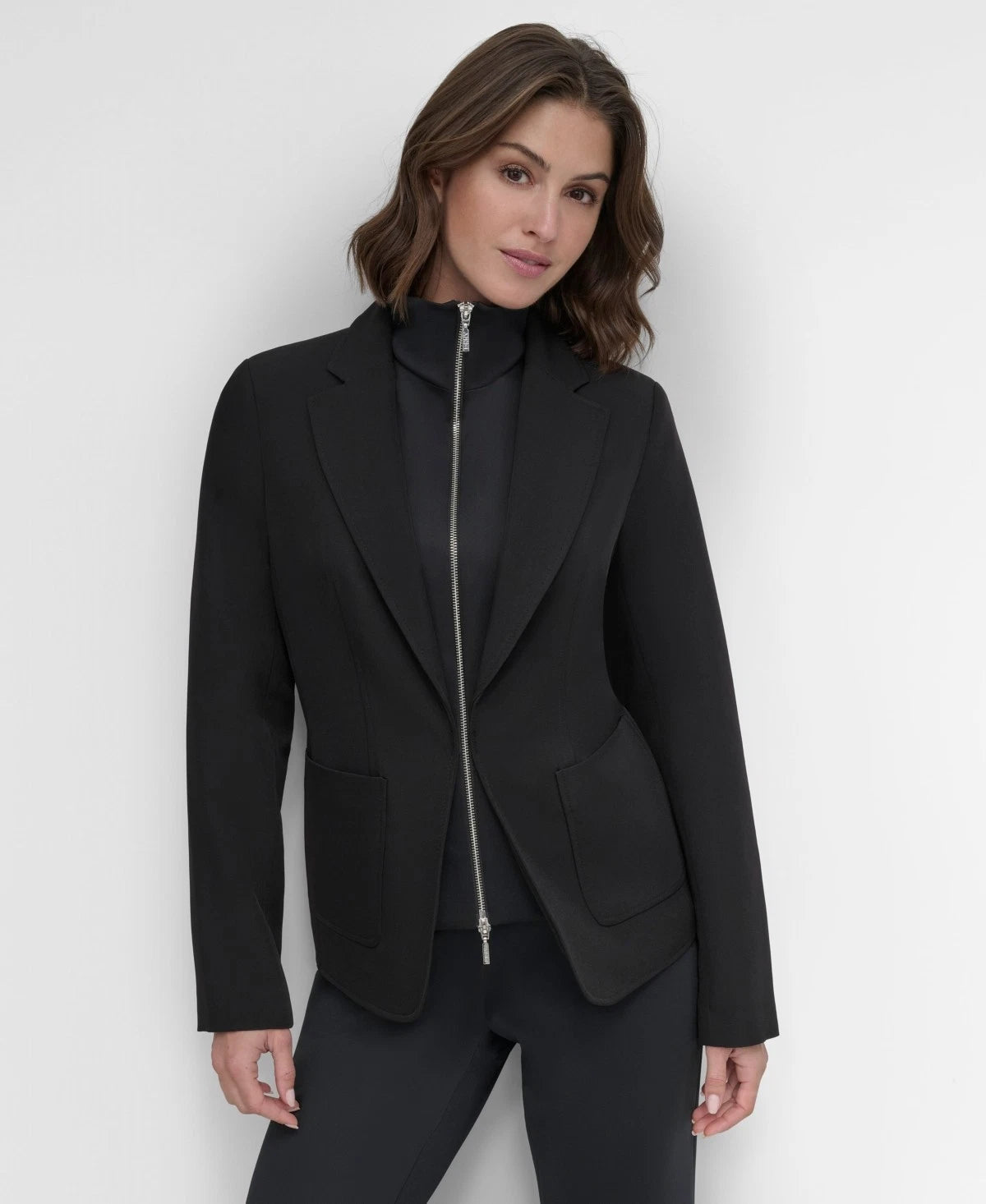 DKNY Women's Double Insert Zip-Front Jacket Black Size 12 MSRP $159