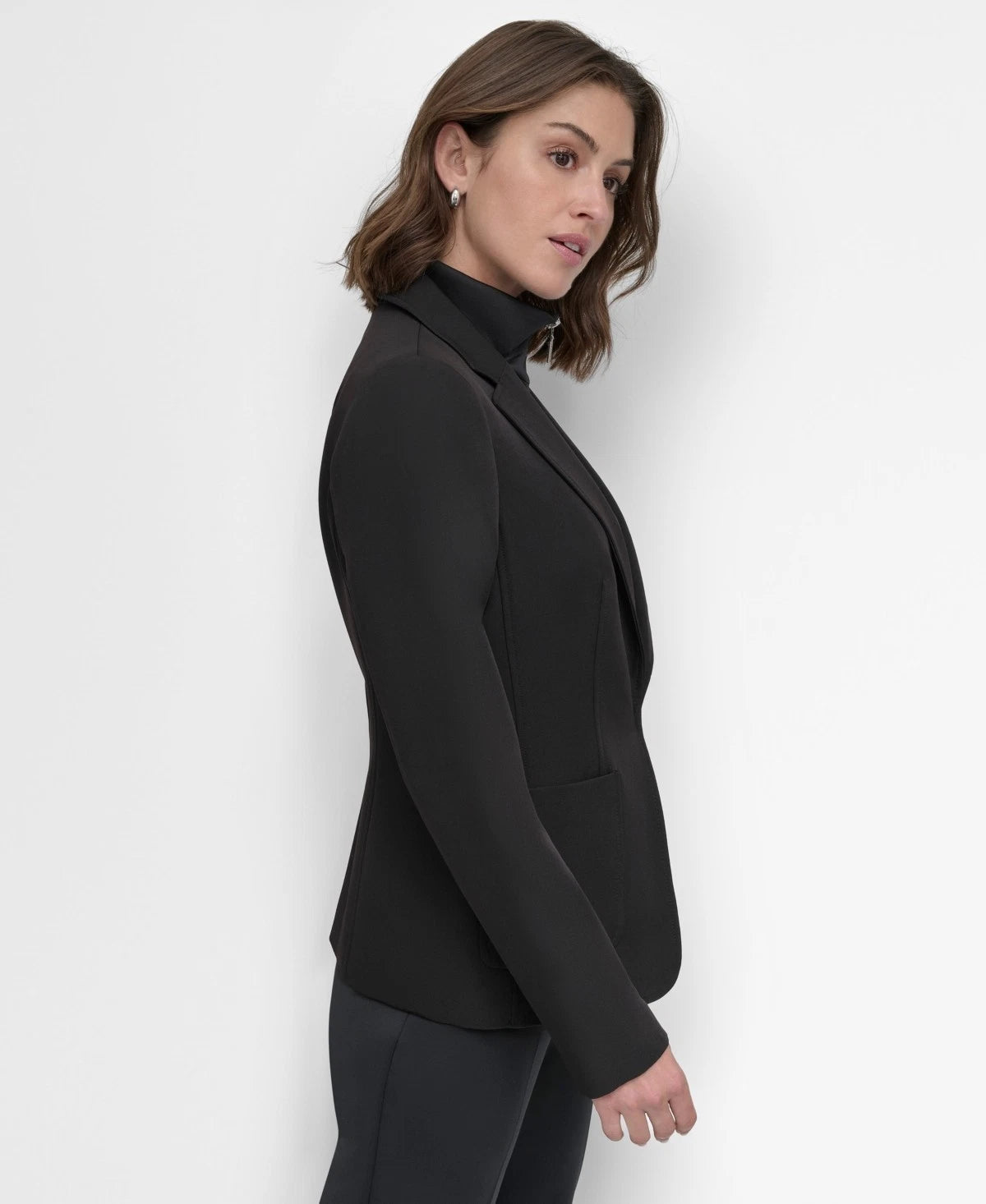 This dickie jacket from DKNY features a built-in scuba fabric insert for added warmth and a layered look. The soft, stretchy scuba material provides comfort and a modern touch, making this jacket both stylish and functional for cooler weather.