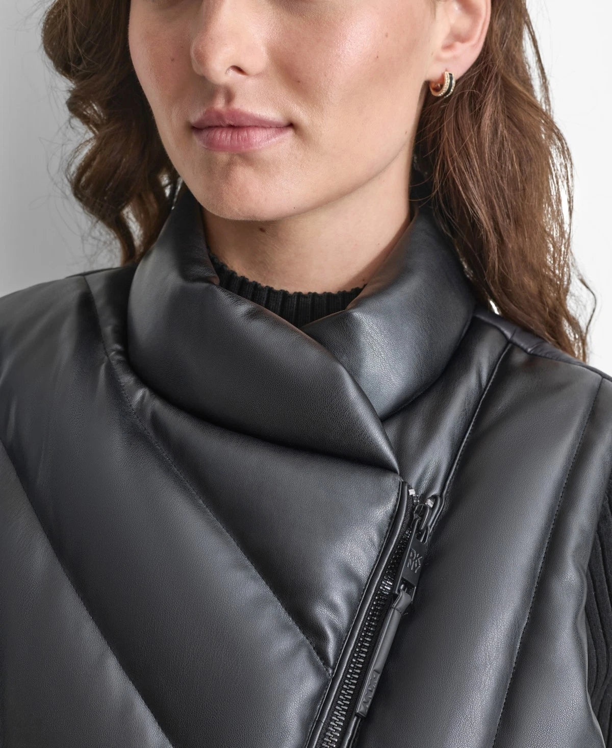 Stay effortlessly stylish and warm with this women's faux leather puffer jacket from DKNY, perfect for a sleek and modern look.