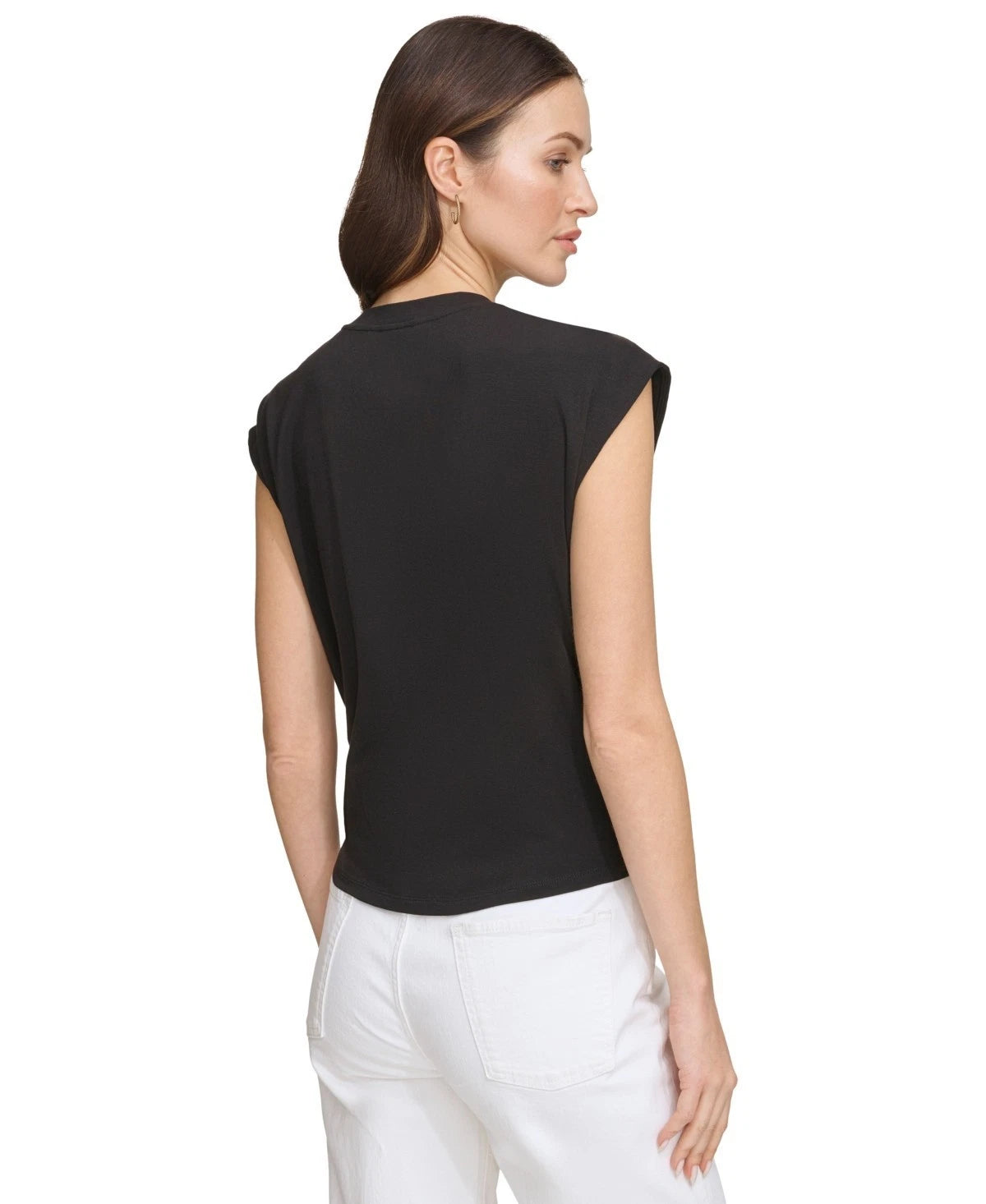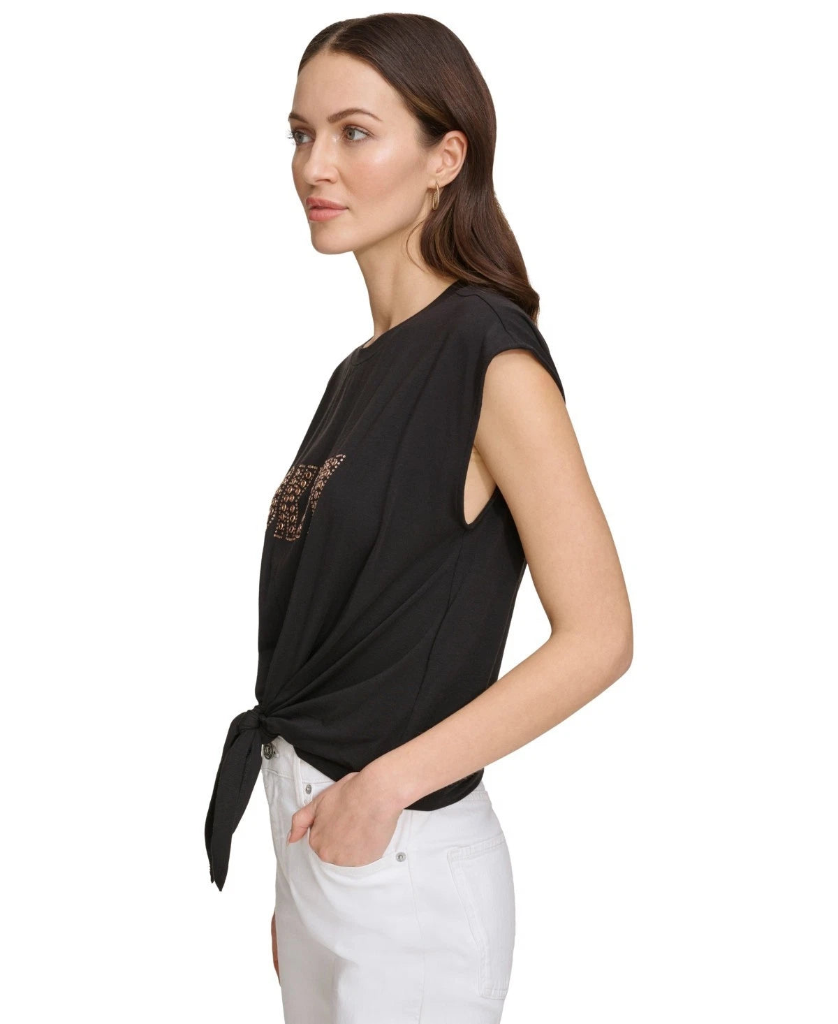 DKNY Women's Grommet-Logo Sleeveless Tie-Hem Top Black Size M MSRP $59