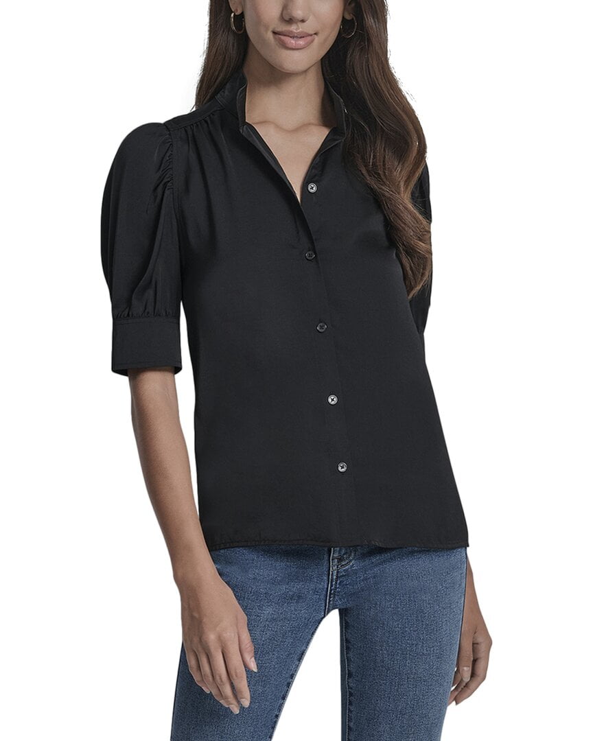 DKNY womens Puff Sleeve Shirt, Size S Black MSRP $69