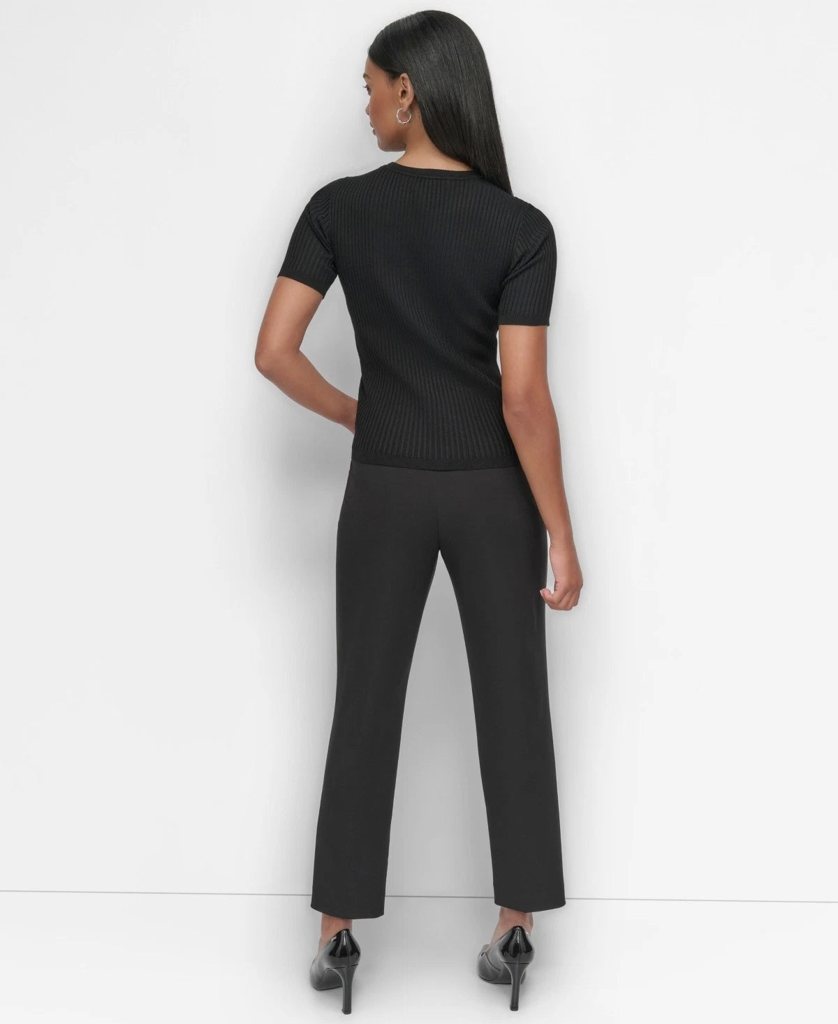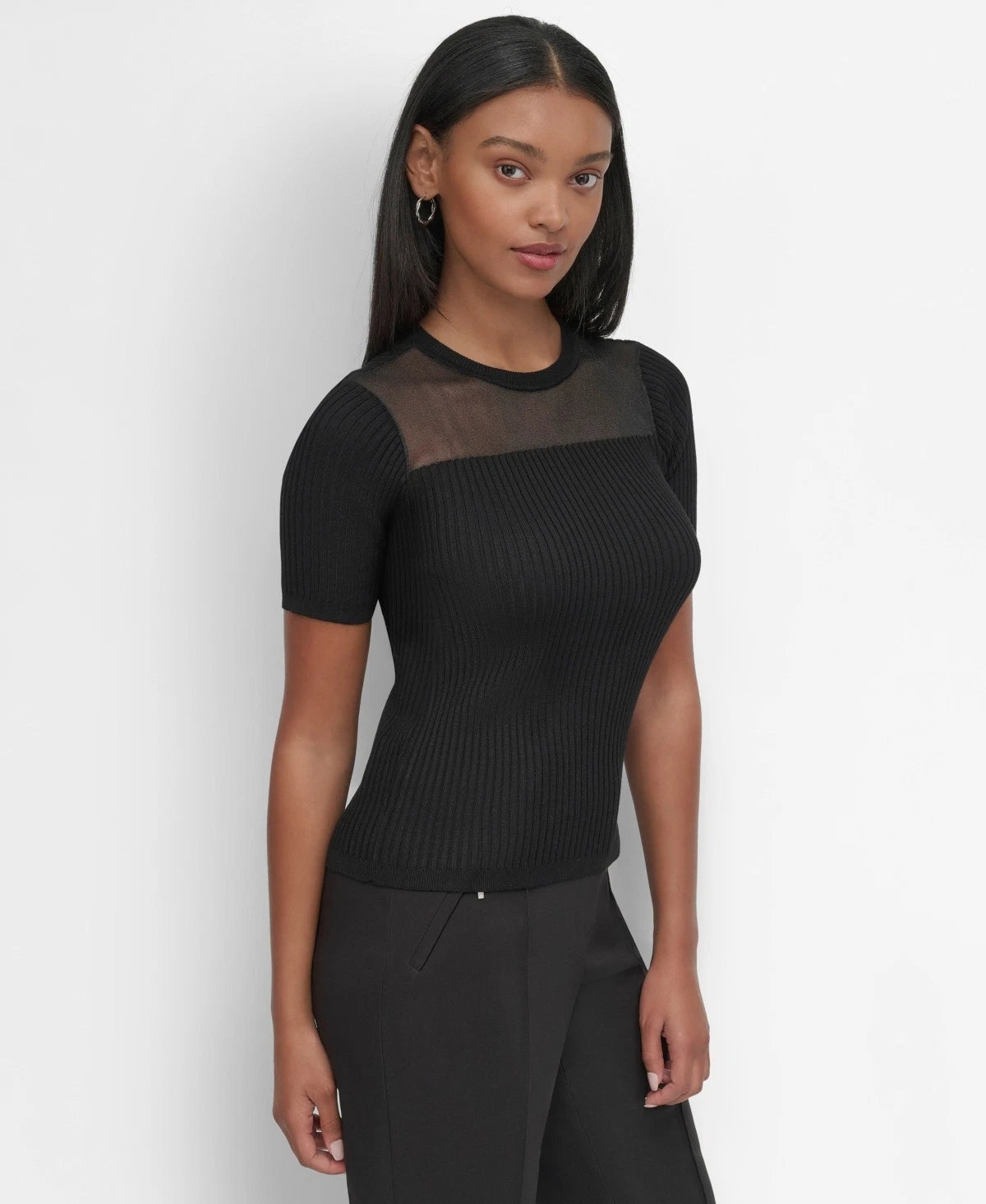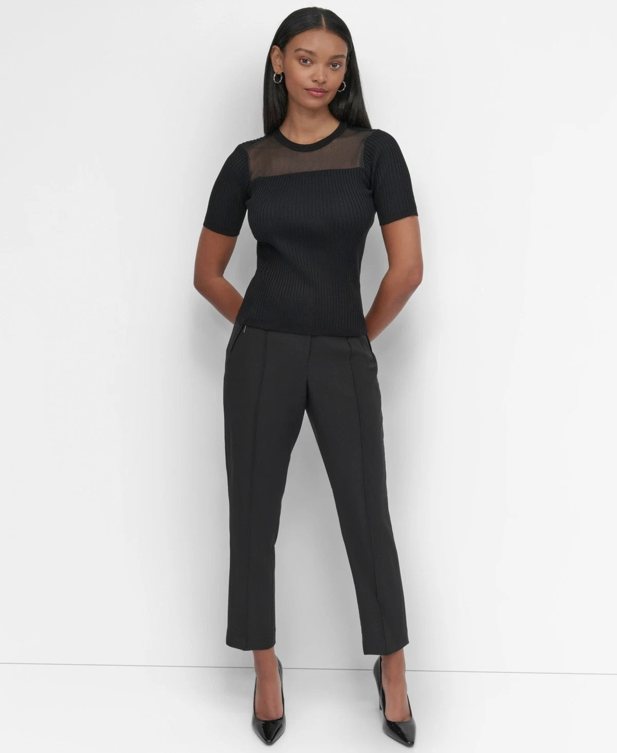 A sheer inset lends a modern feel to this short-sleeve sweater from DKNY.