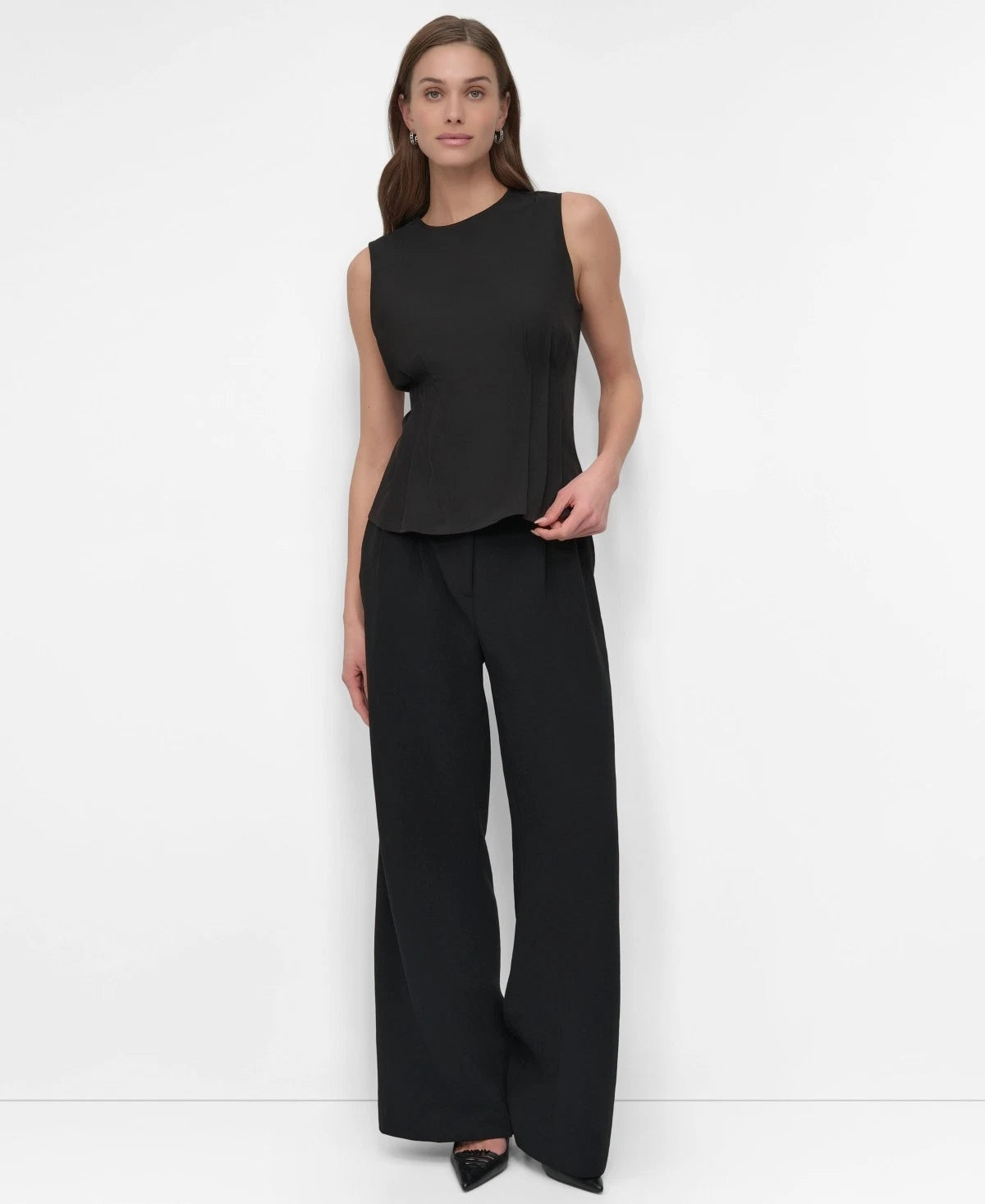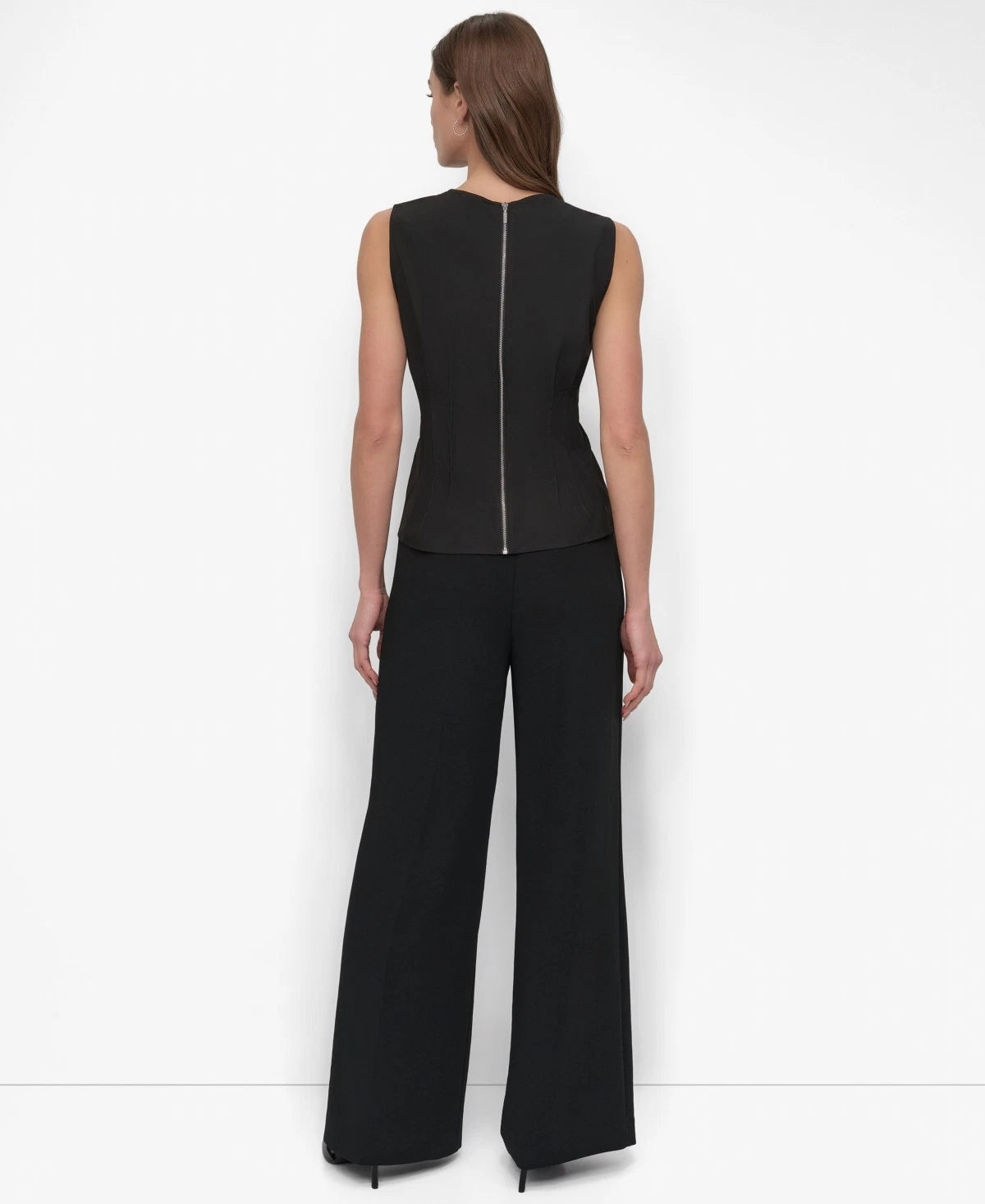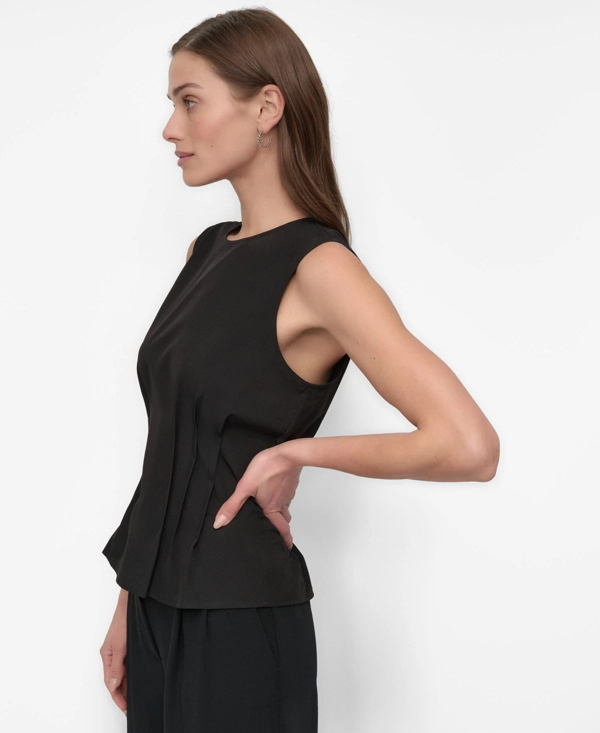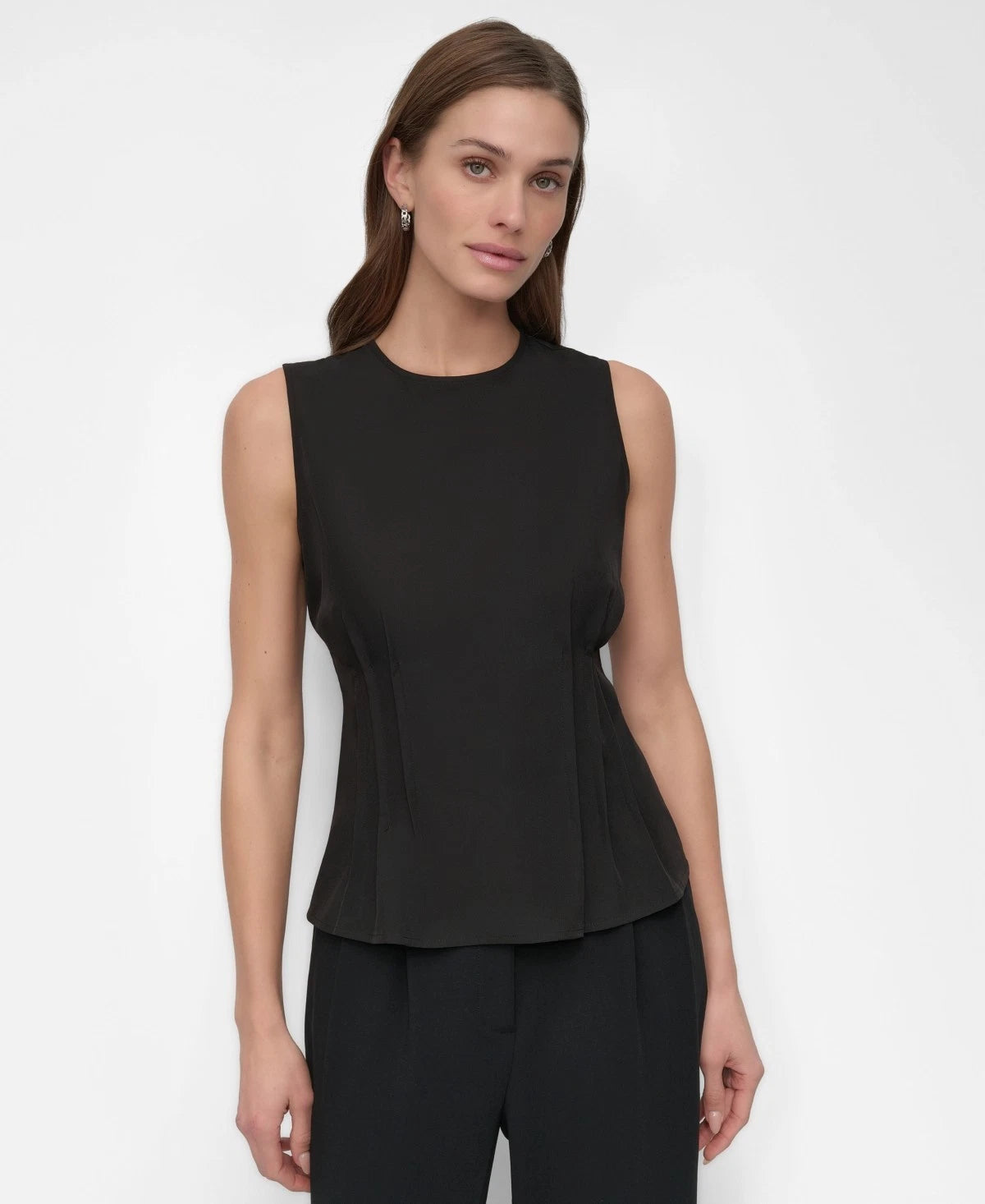 DKNY Women's Sleeveless Peplum Blouse Black Size XL MSRP $69