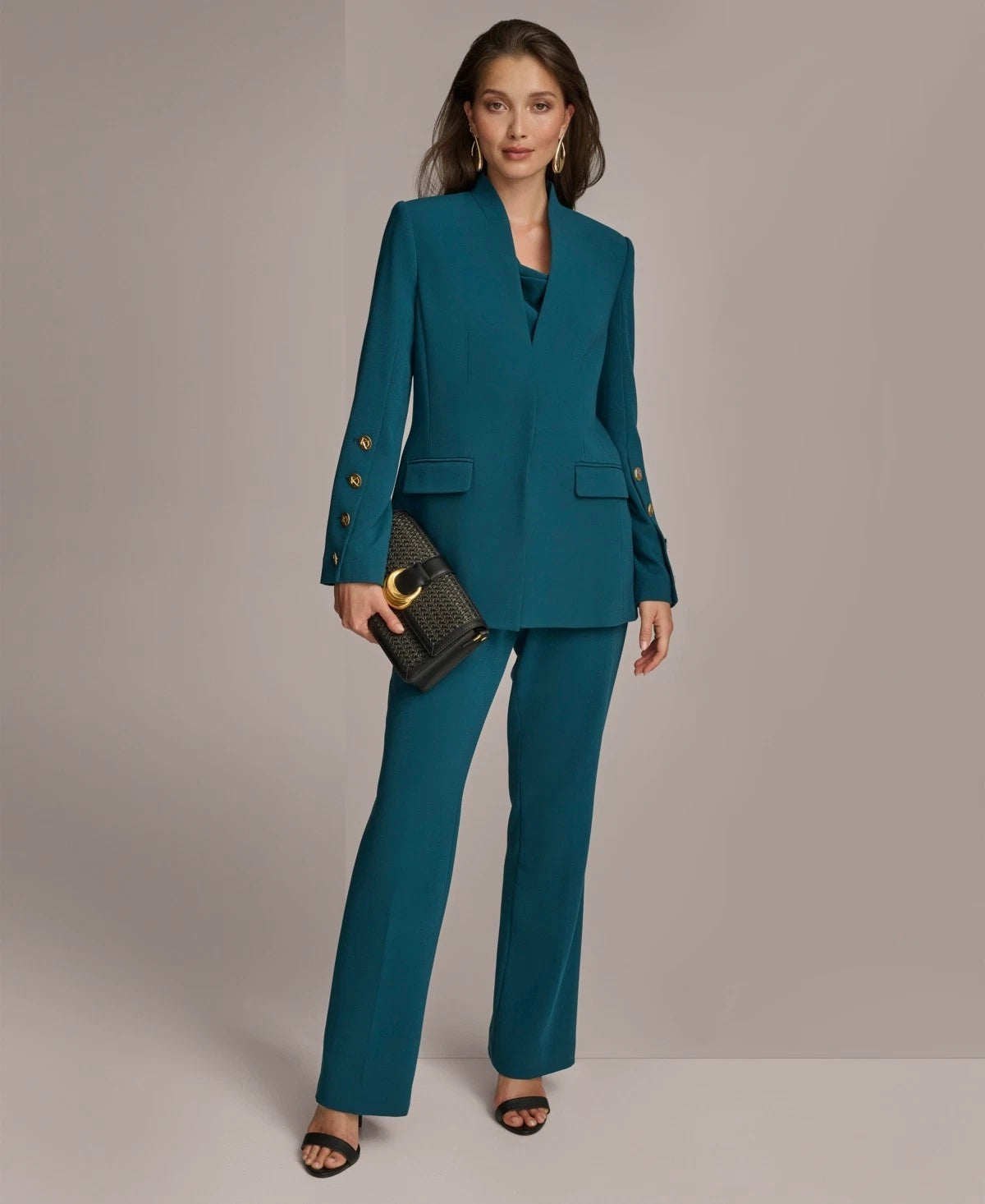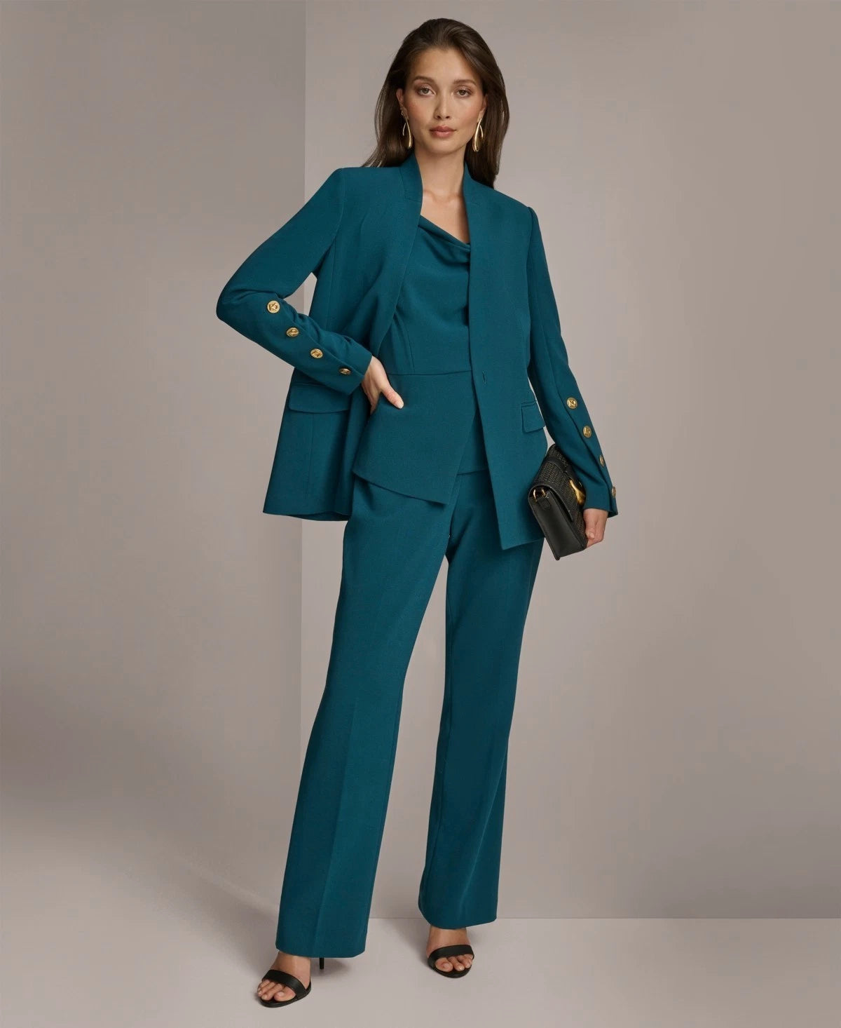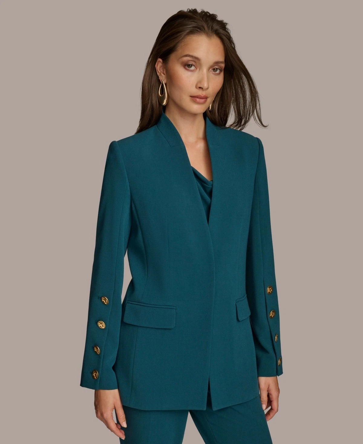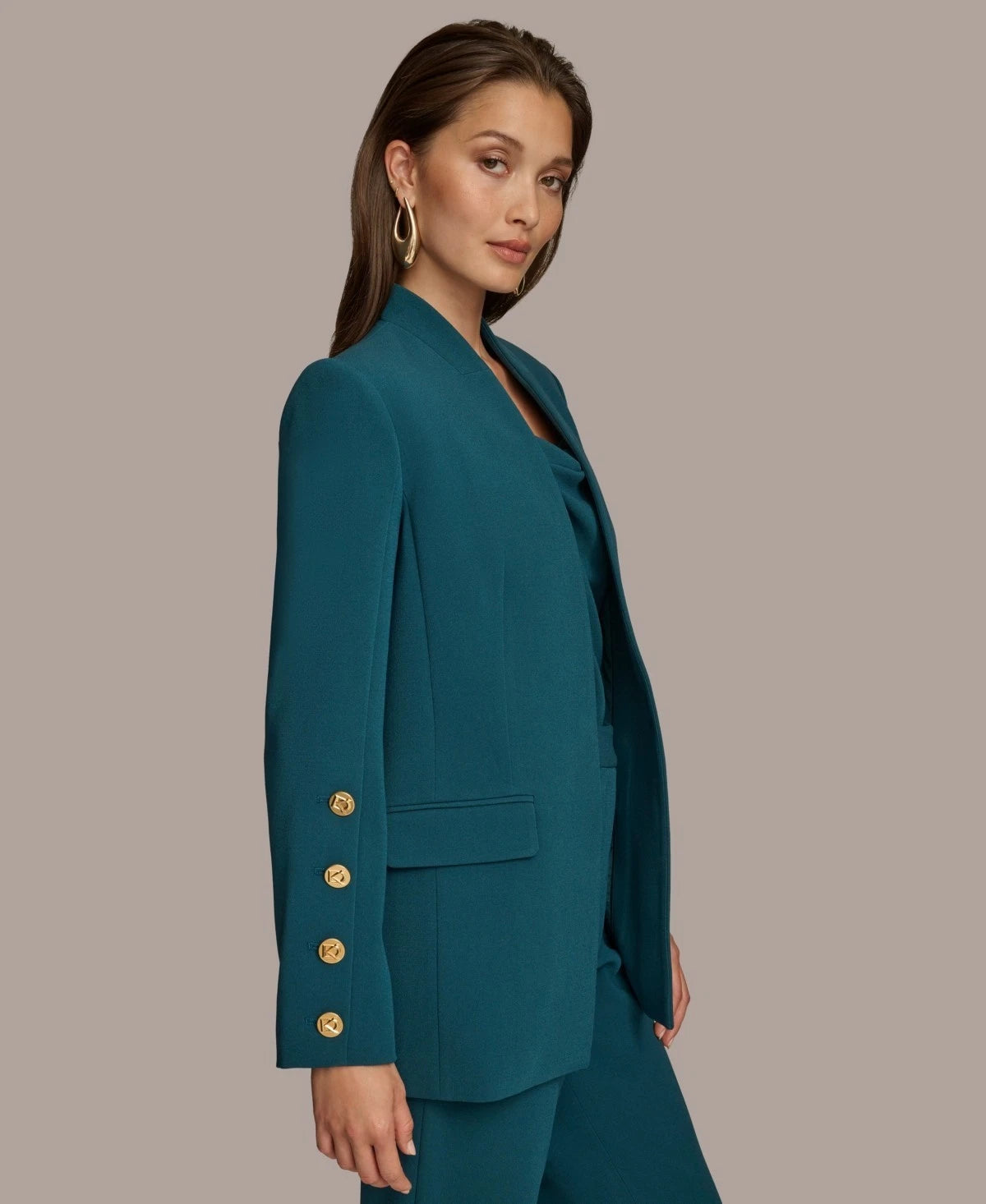 Donna Karan's blazer features a one button silhouette and chic button detail along the sleeves.