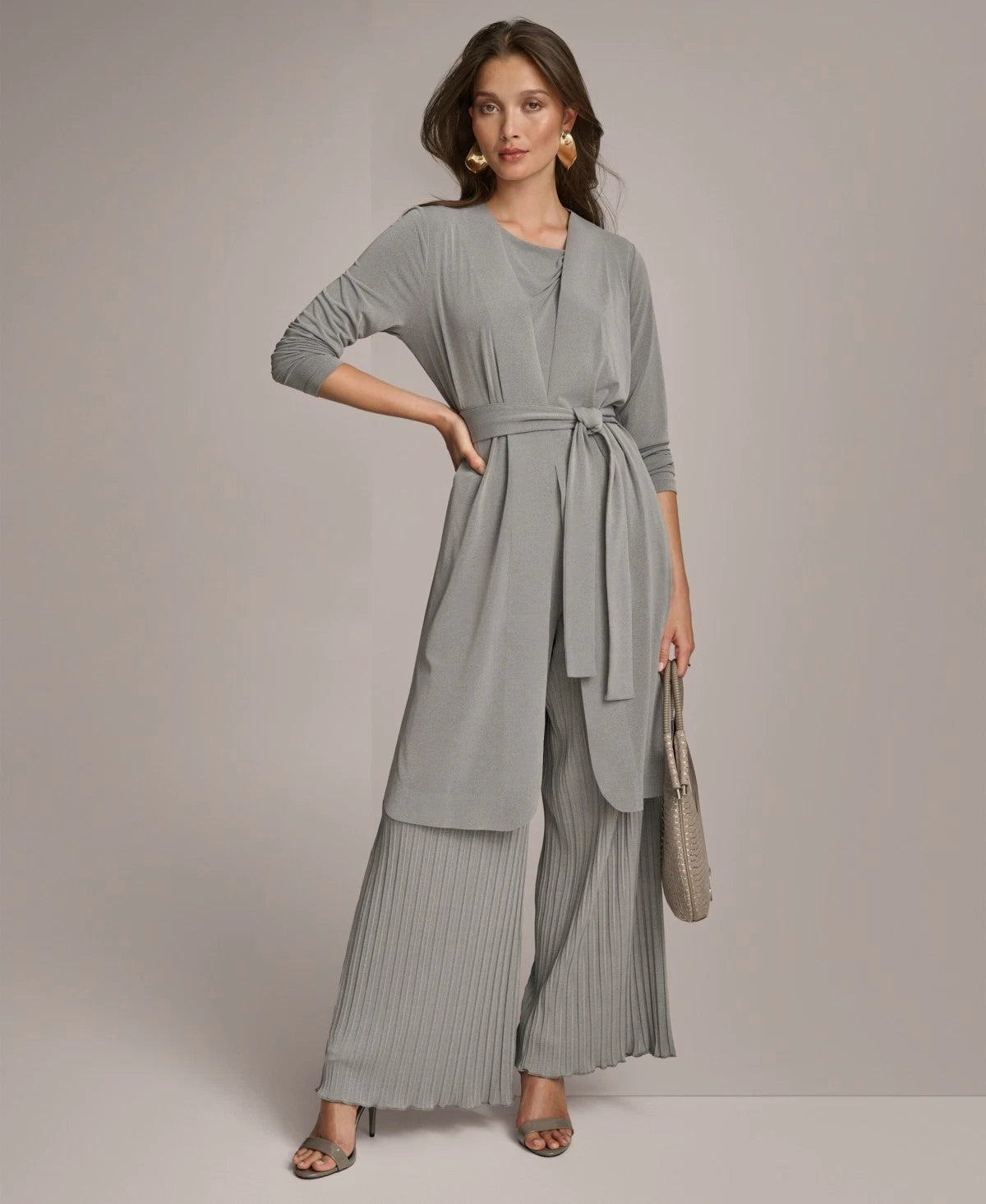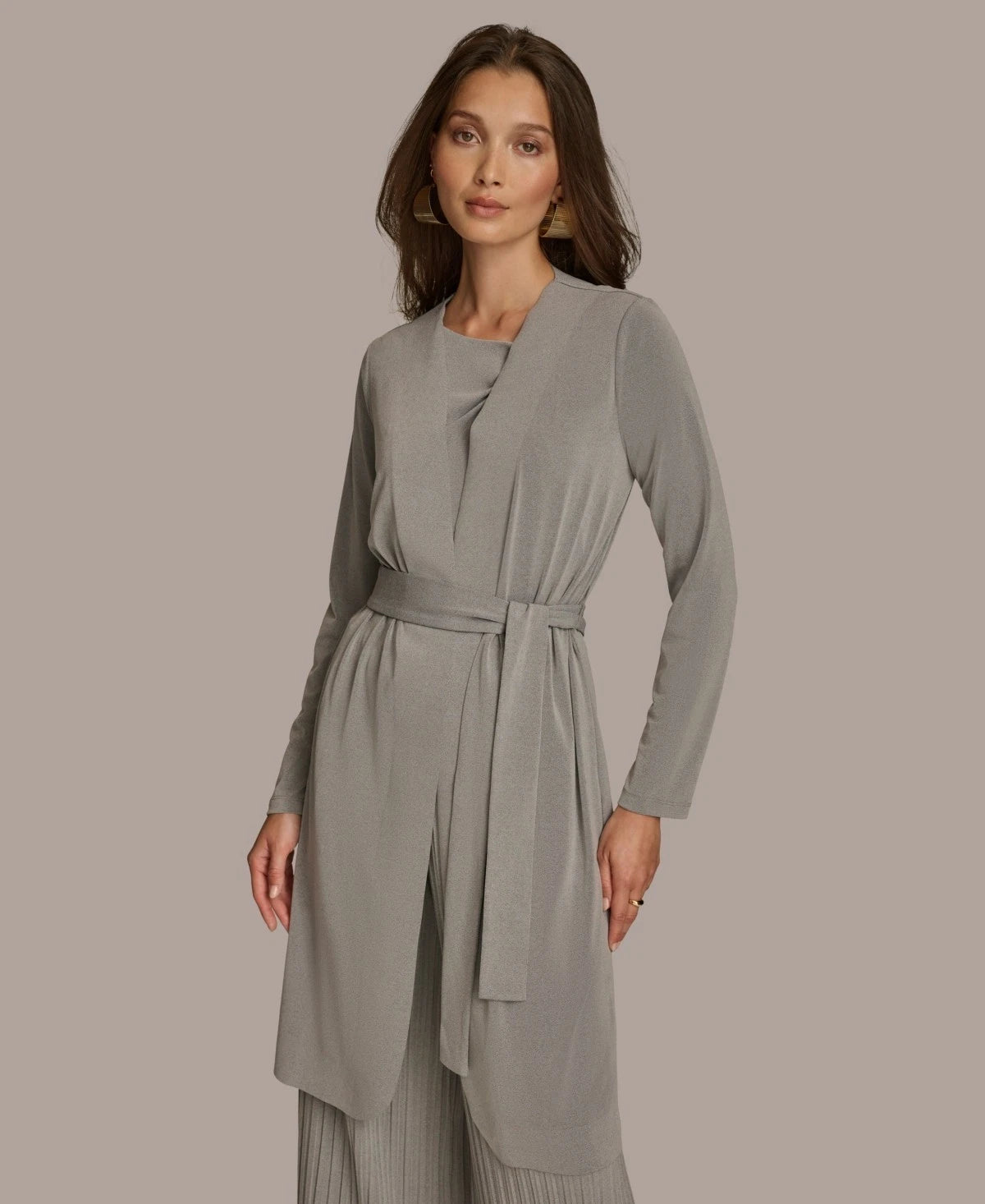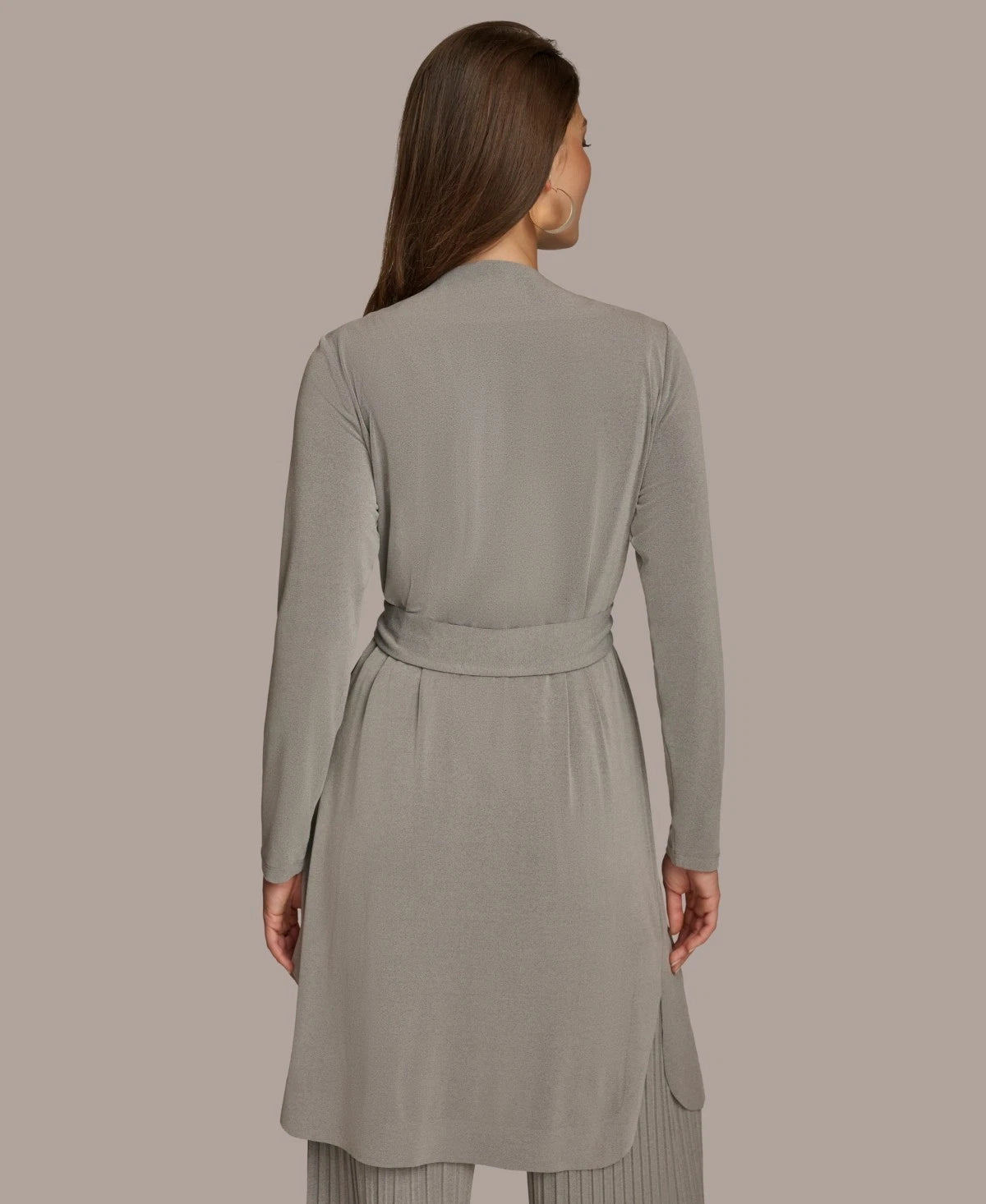 Donna Karan Women's Tie Waist Long Cardigan Gray Size M MSRP $139