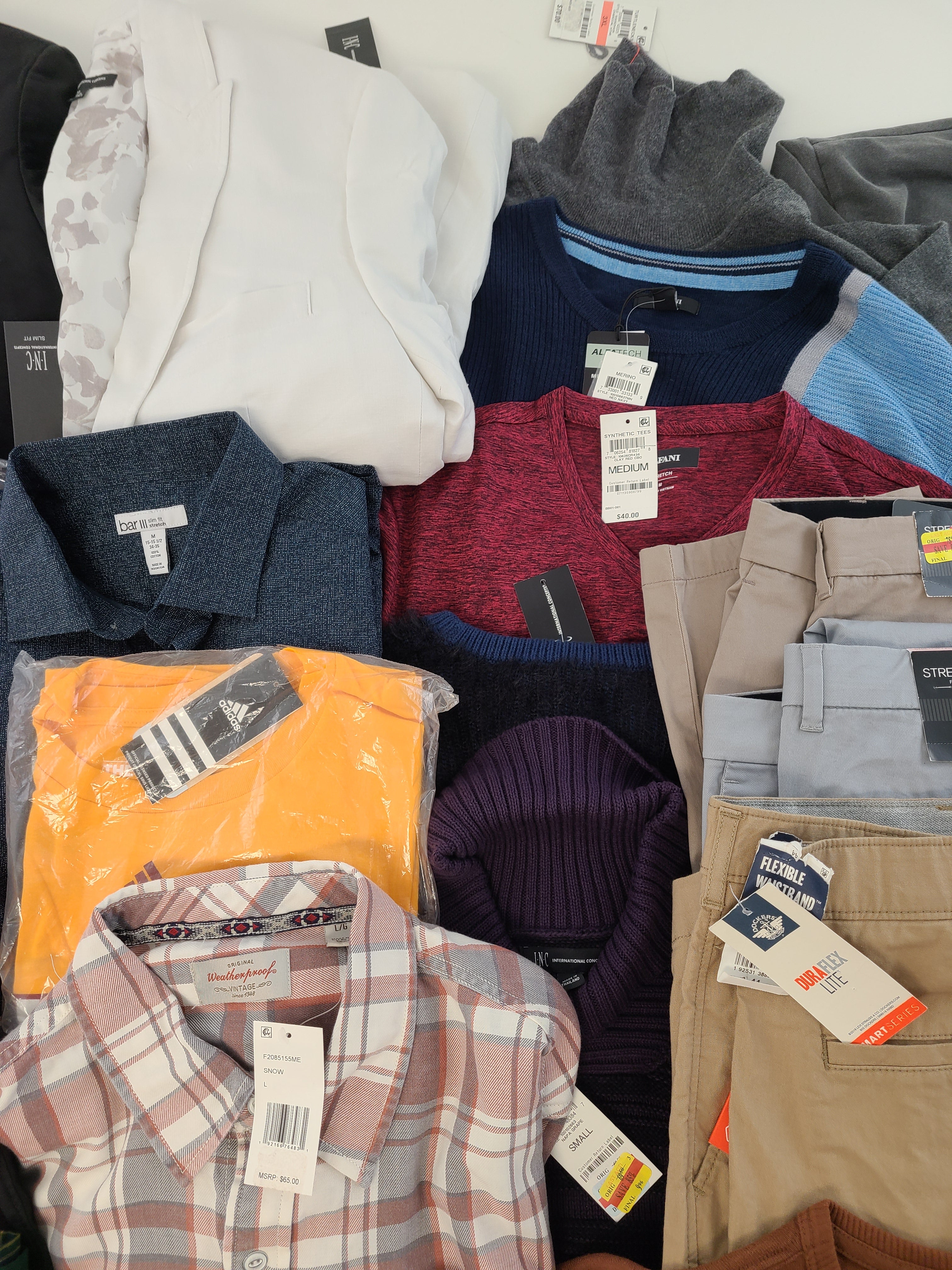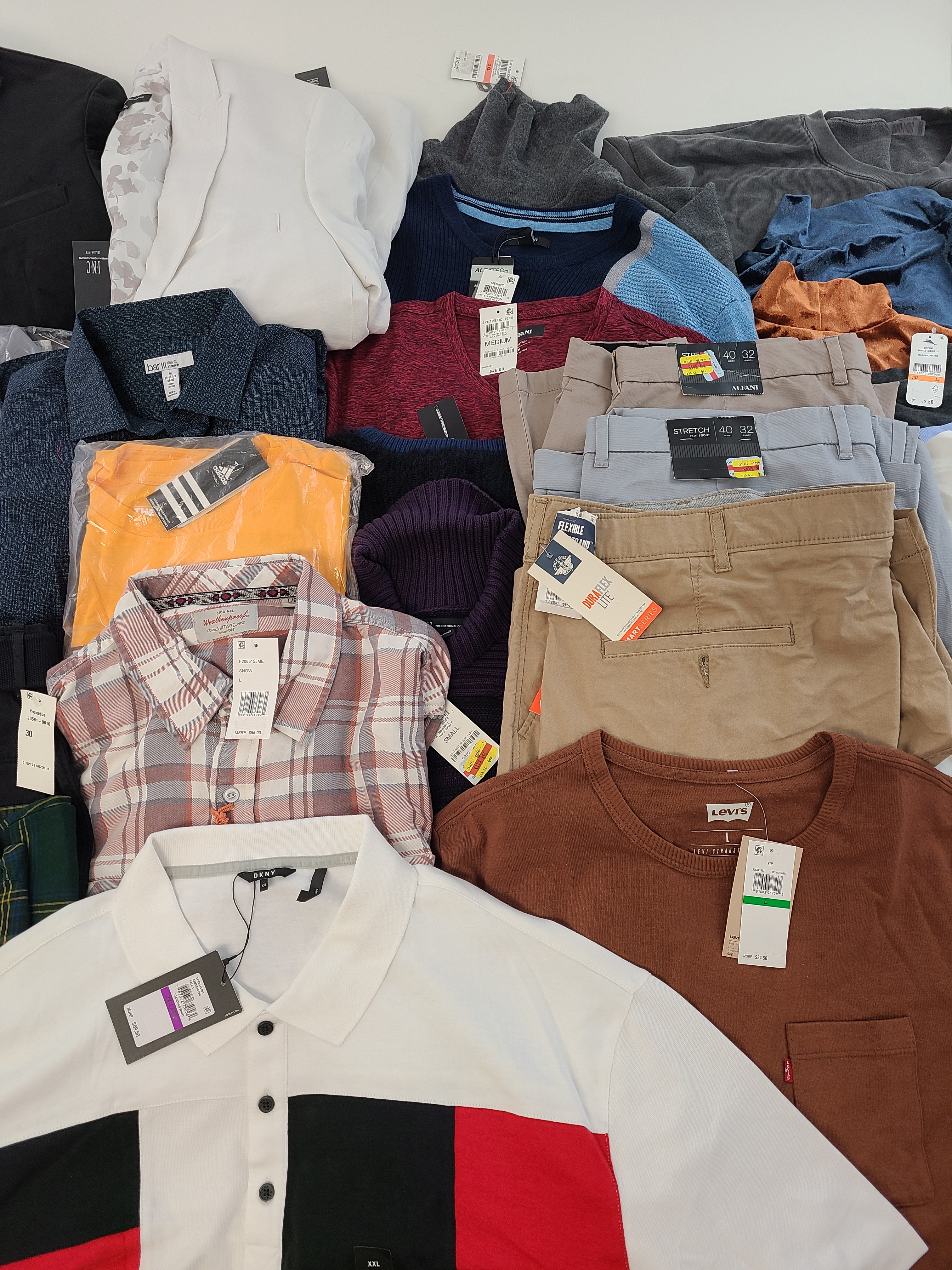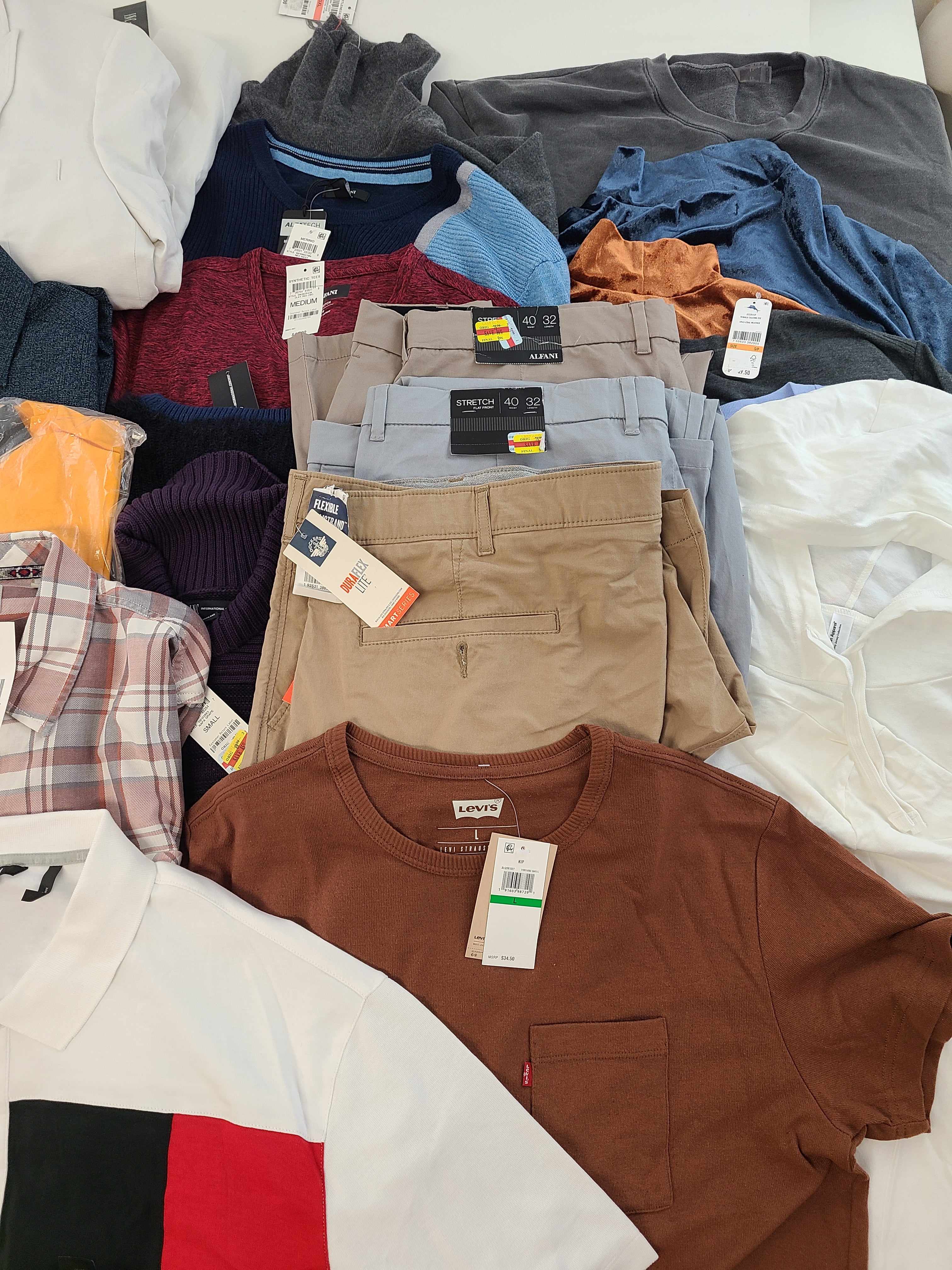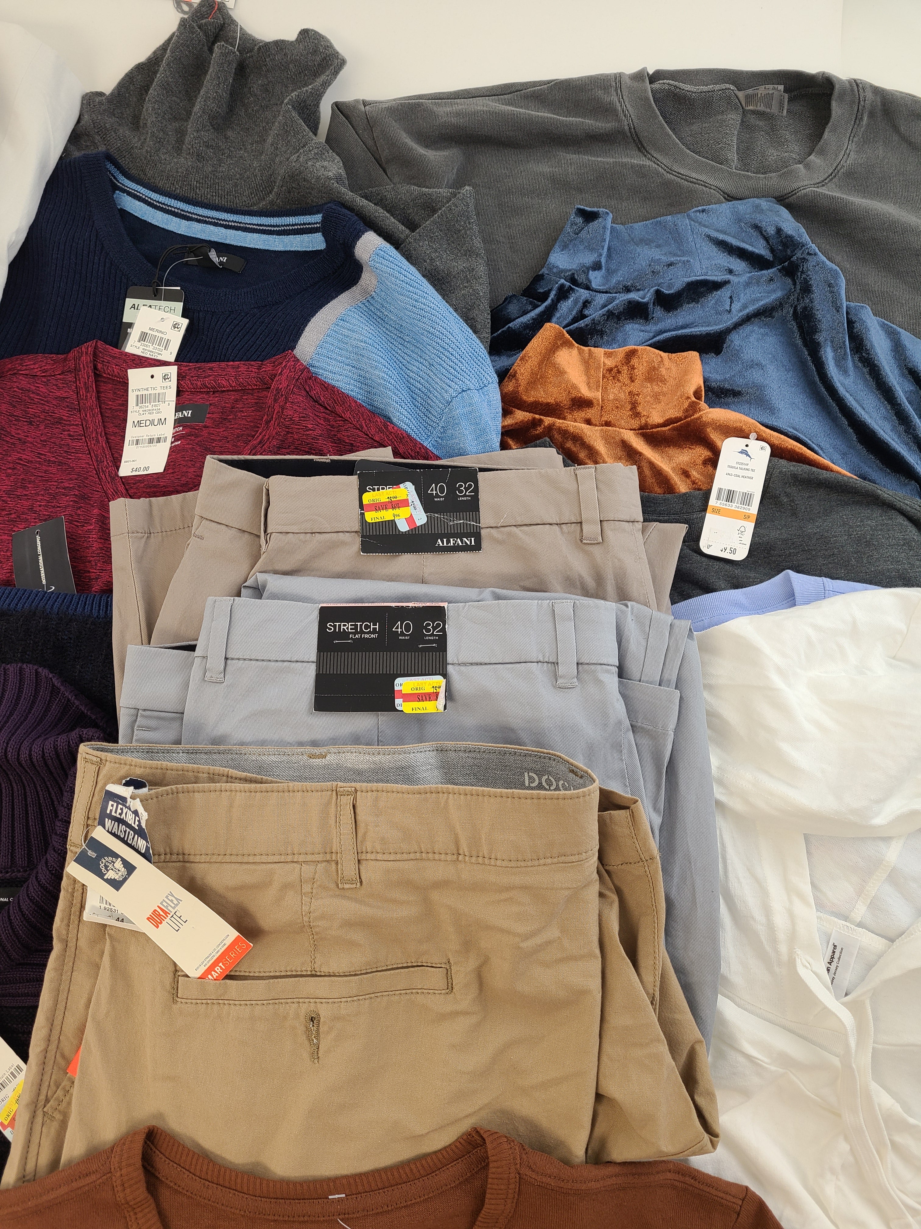 | Fashion | Shelf Pulls | 732996750965 | Mens | ALFANI-MMG | Alfani Mens Classic-Fit Chino Pants Khaki Pant 40x32 | $75.00 | 1 | 75 | 40X32 | Yes | See Image(s) |