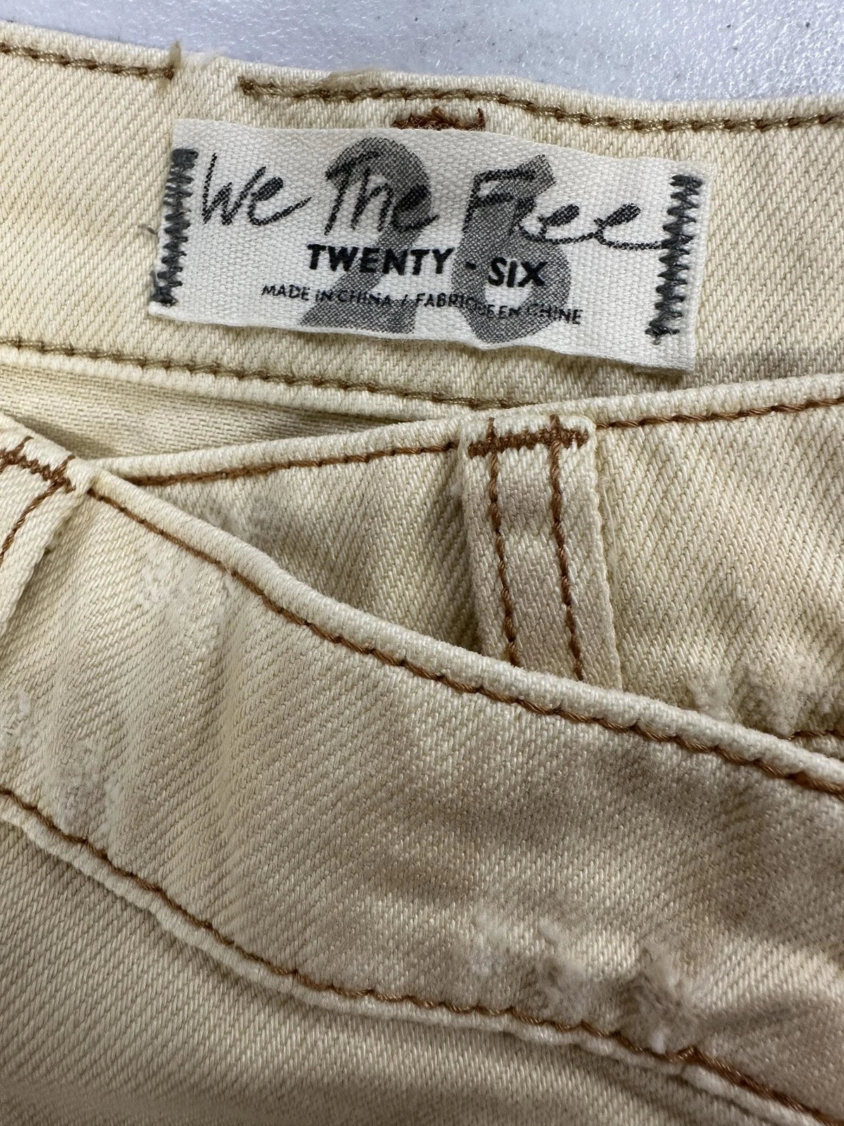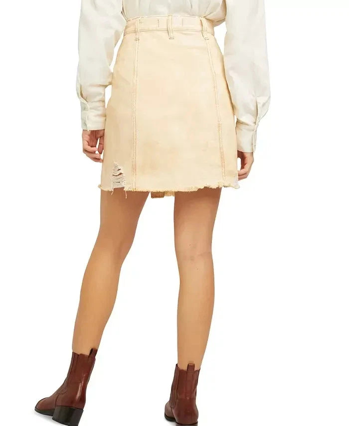 Free People Skirt Women Size 26 Beige Denim Mini Distressed High Rise Frayed $68