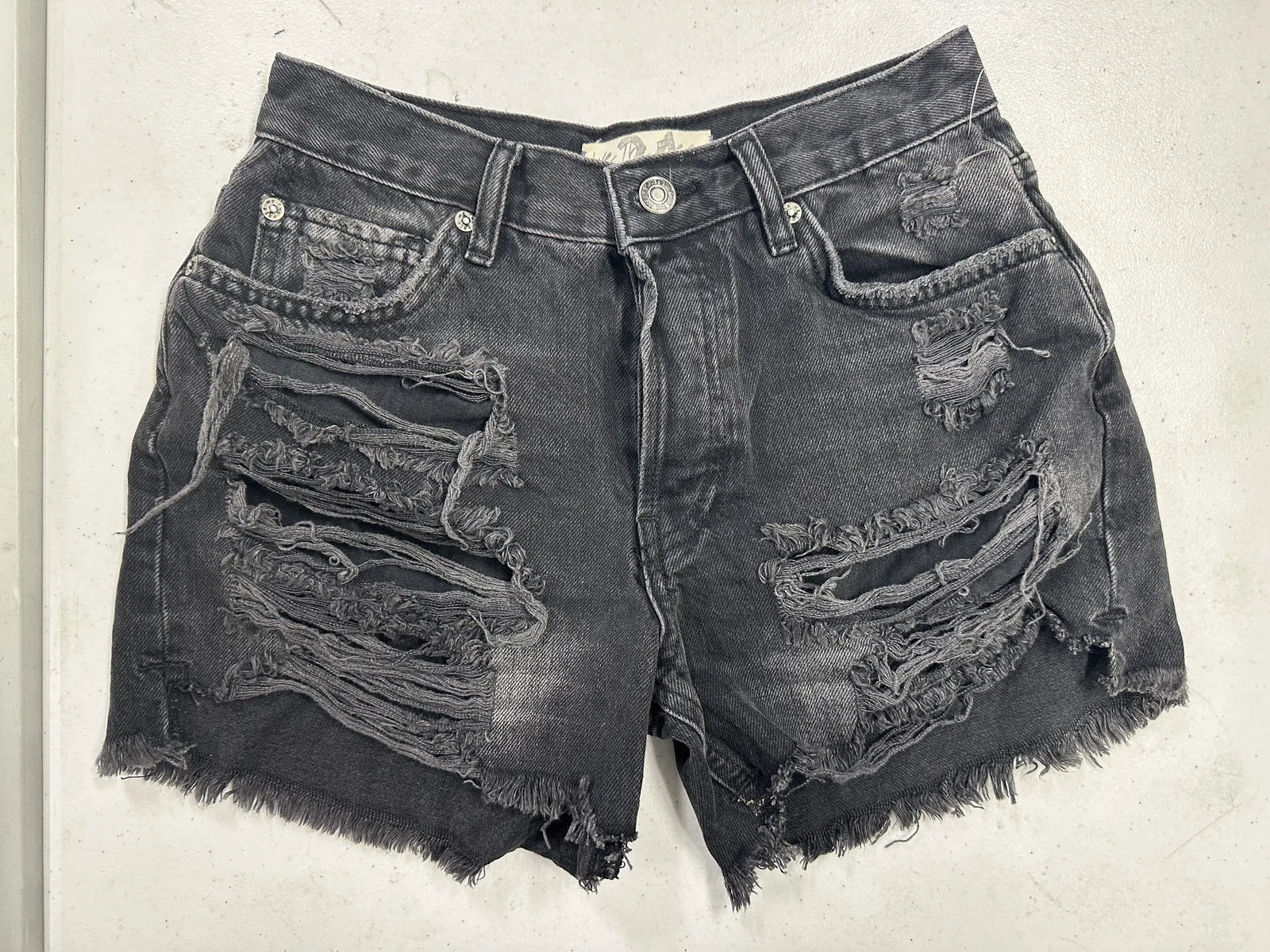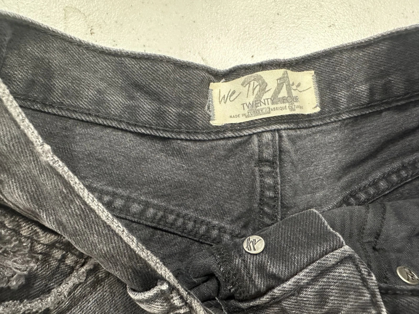 Keywords: We The Free jean shorts, womens size 24 gray distressed cutoff denim, ripped frayed hem festival shorts