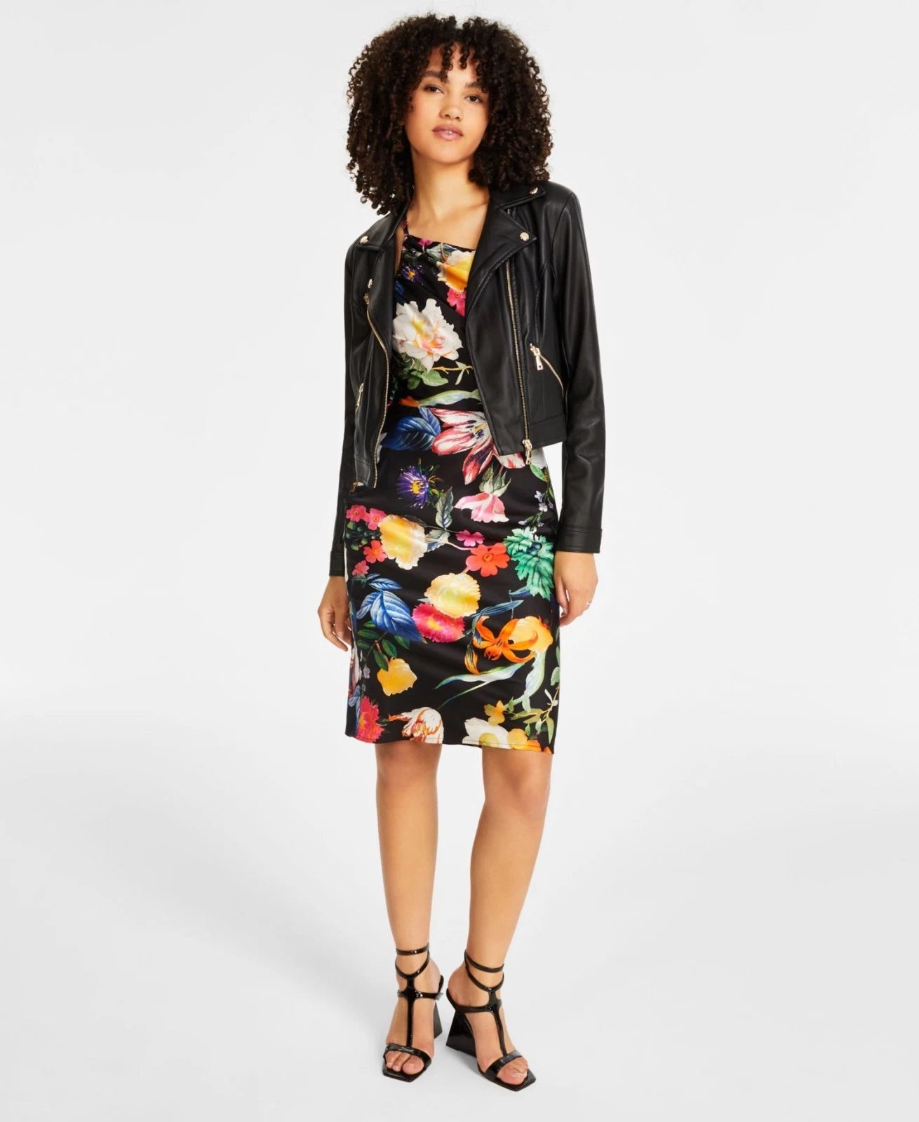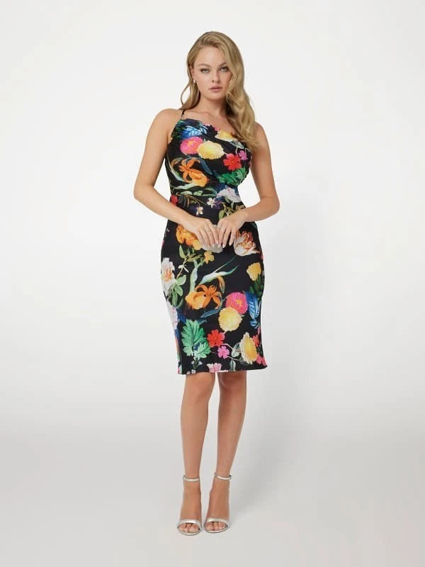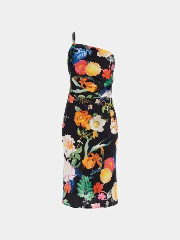 GUESS Women's Cindy One-Shoulder Floral-Print Dress Black Size 6 MSRP $138