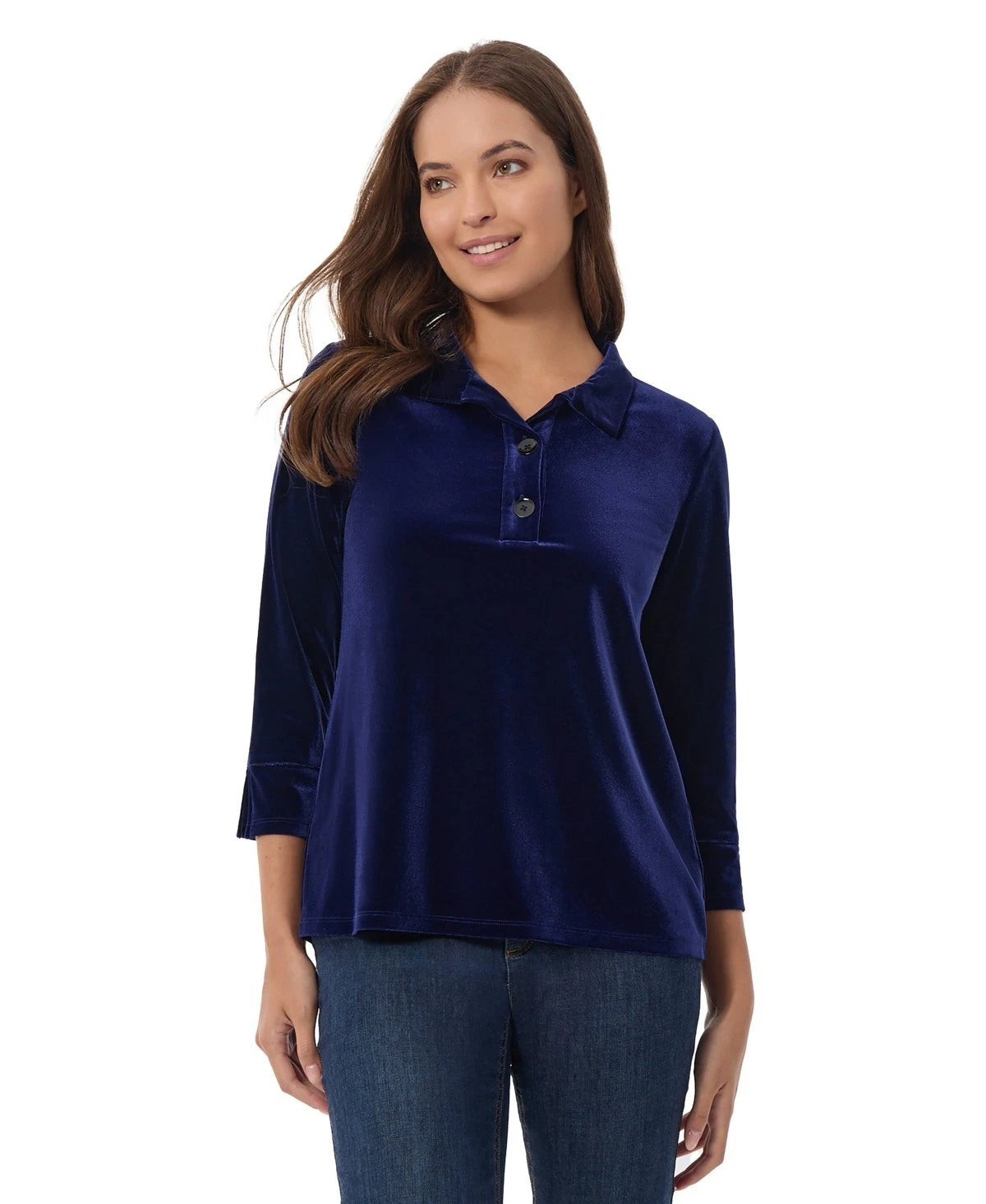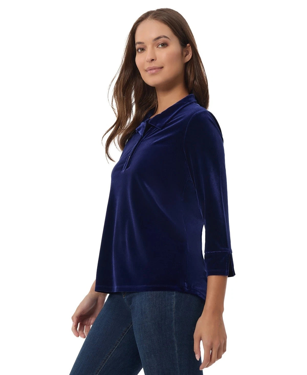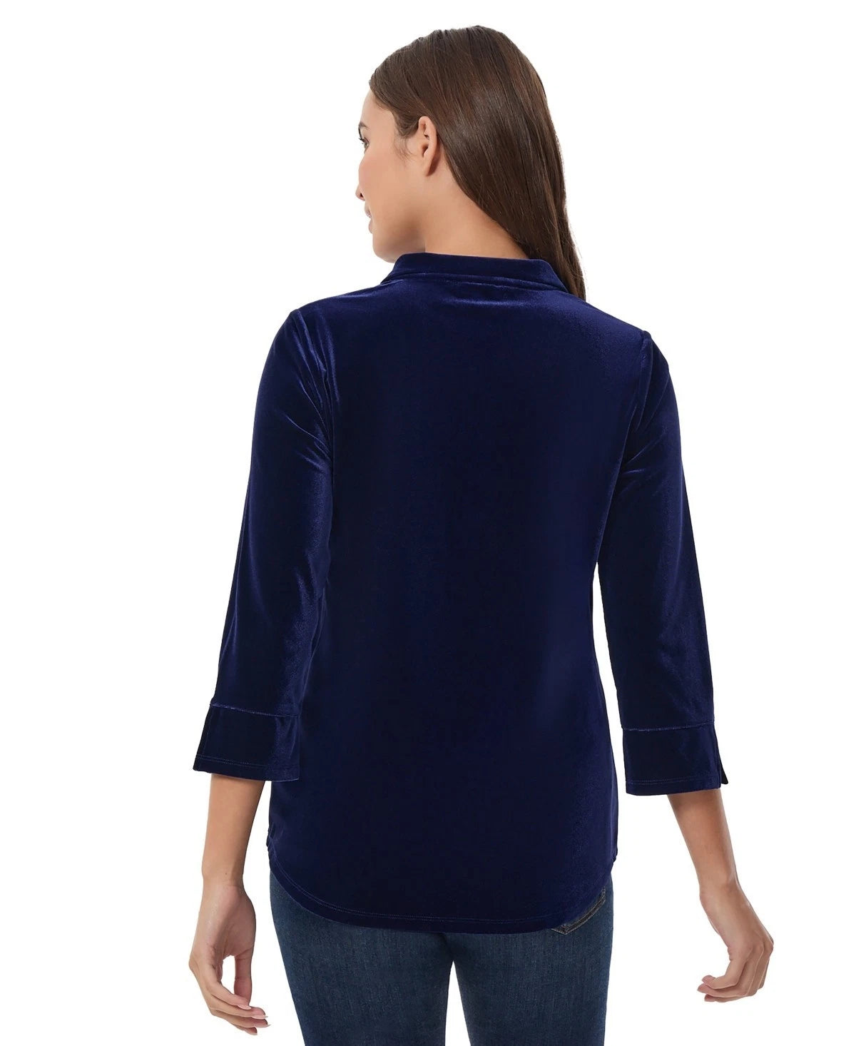 Jones New York Stretch Velour 3/4 Sleeve Popover Collar Top Blue Size M $90