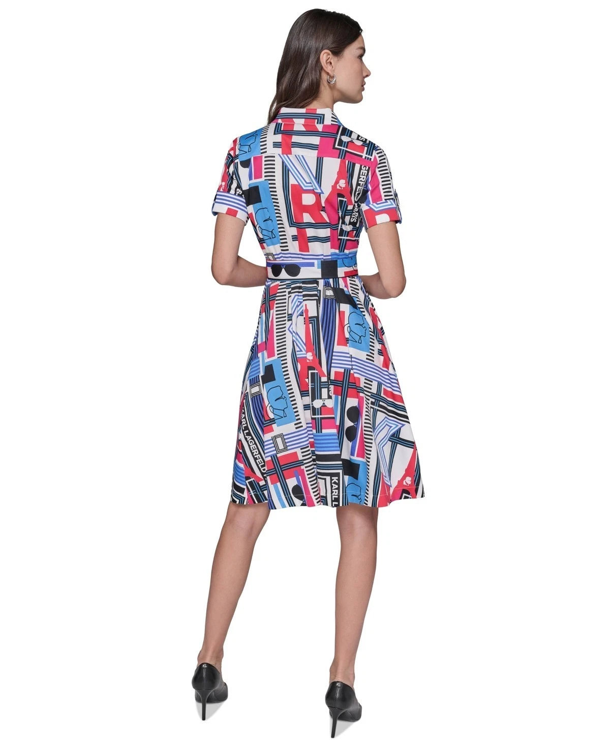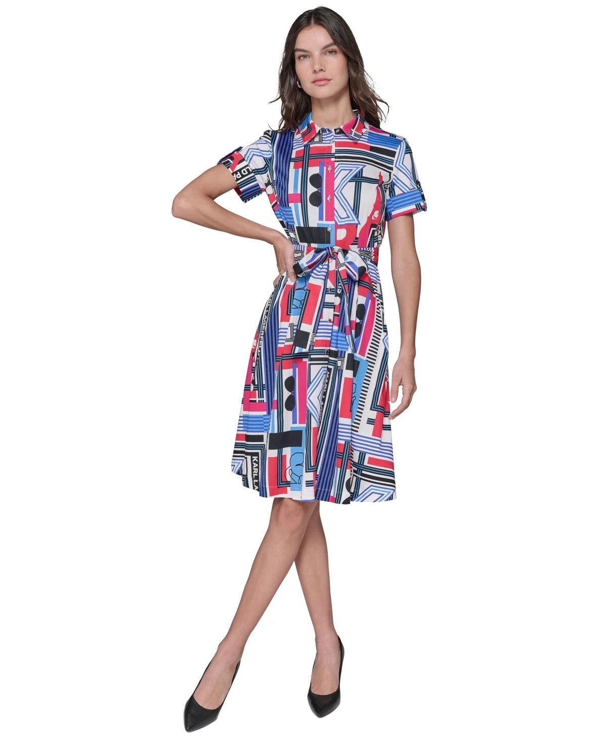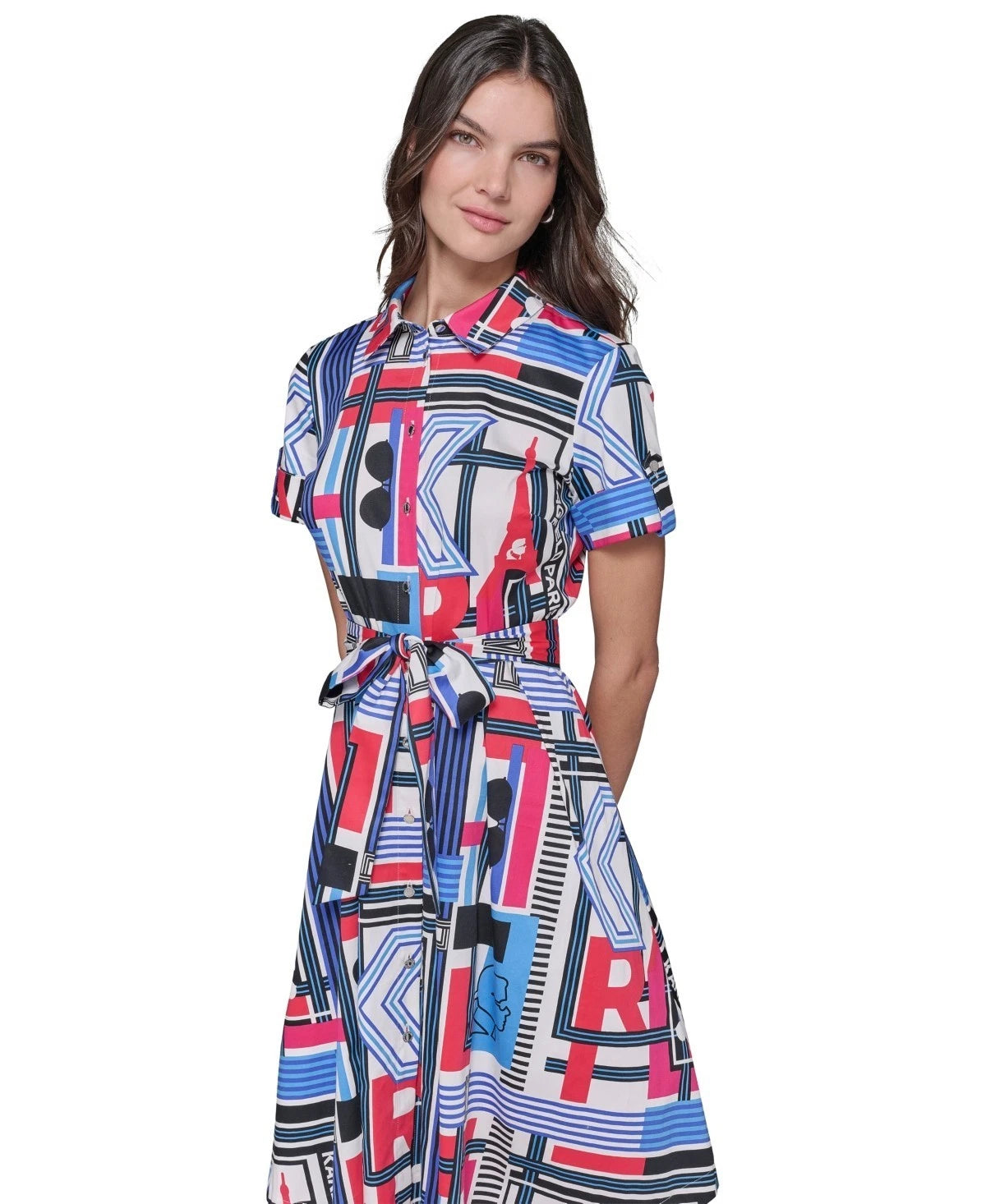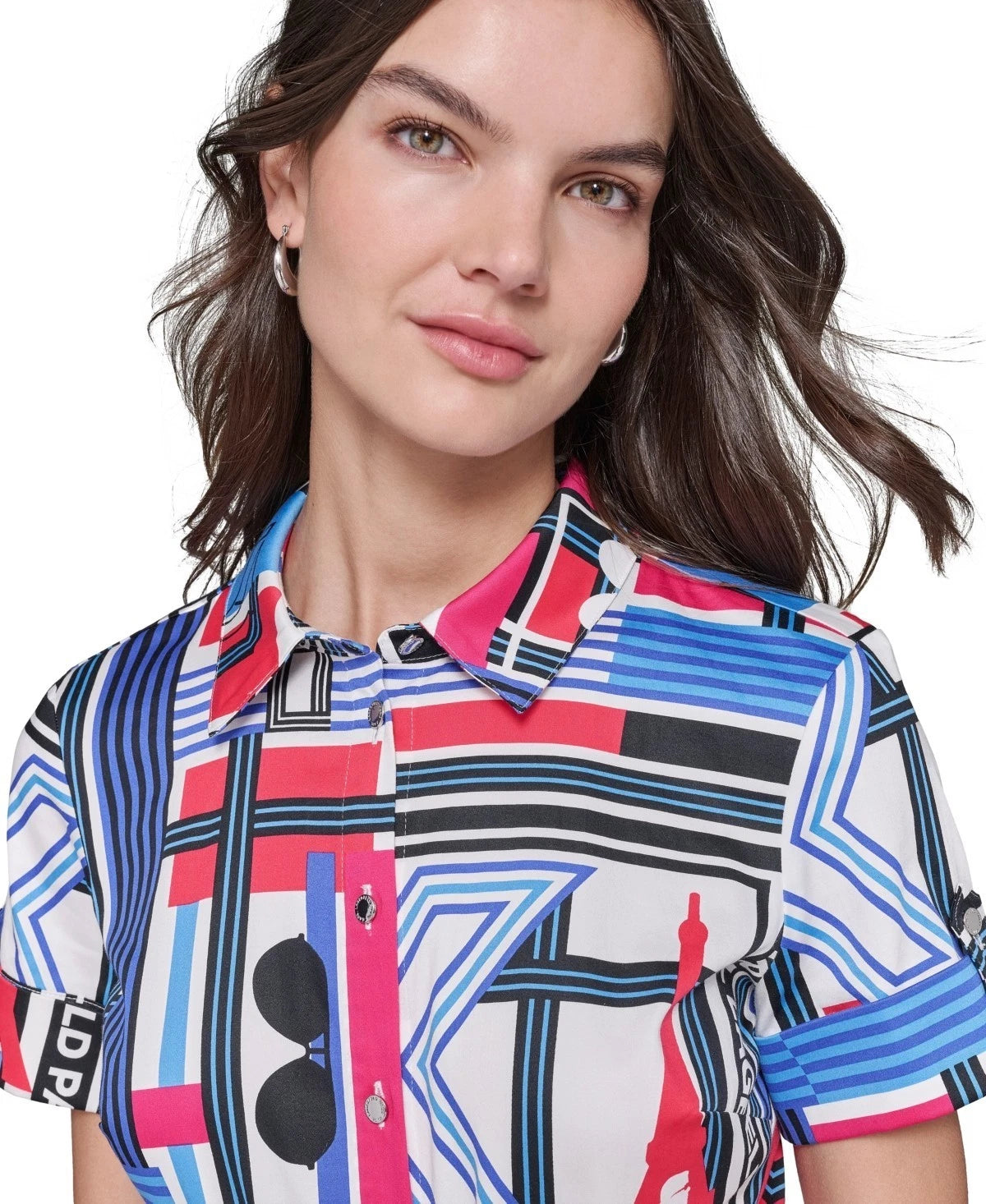 KARL LAGERFELD PARIS revamps the classic shirtdress with this short-sleeve version designed with a bold print throughout.