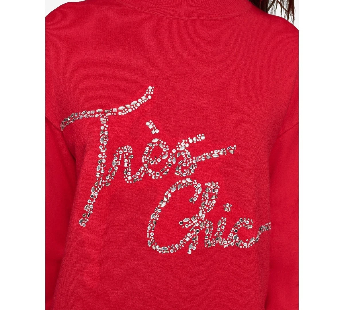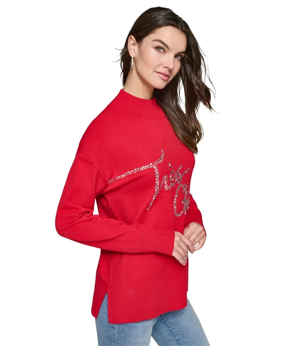 KARL LAGERFELD PARIS Women's Embellished Graphic Mockneck Sweater Red $99