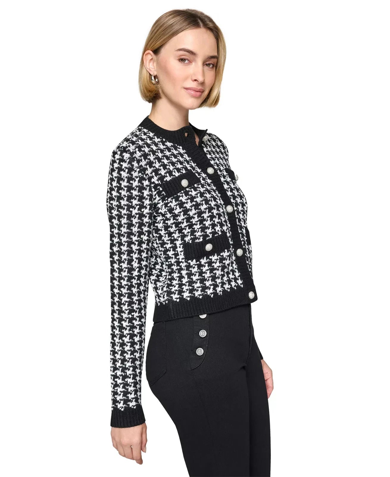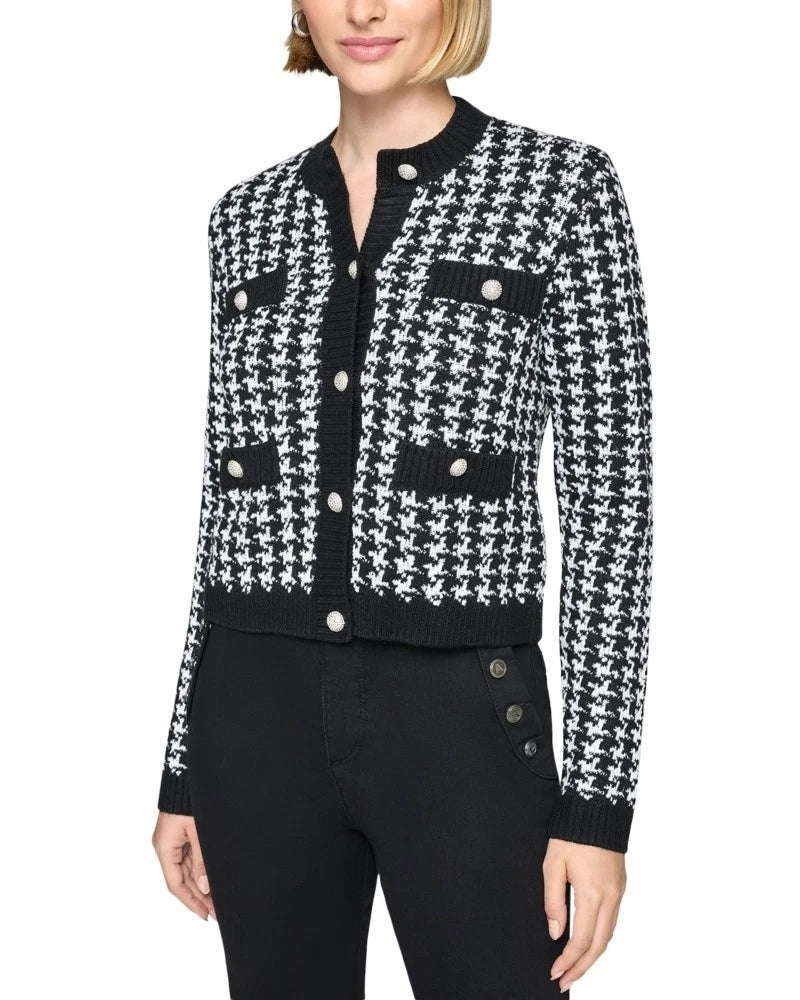 KARL LAGERFELD PARIS Women's Houndstooth Cardigan Black SIze M MSRP $139