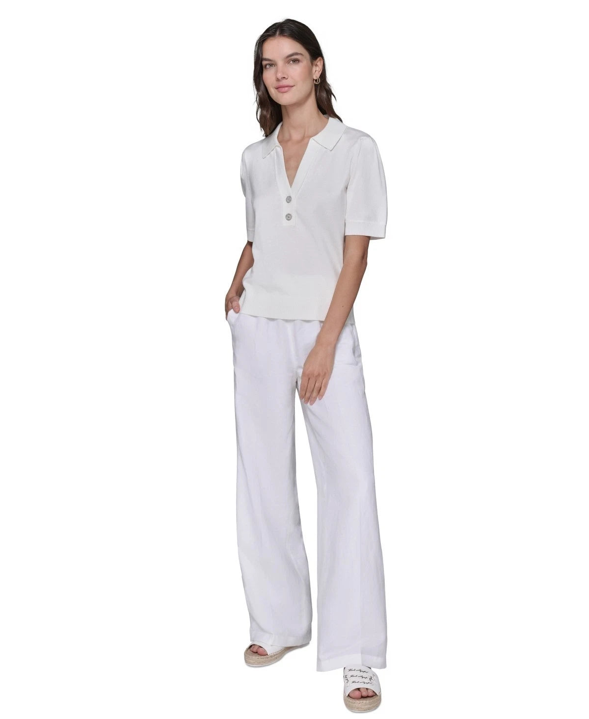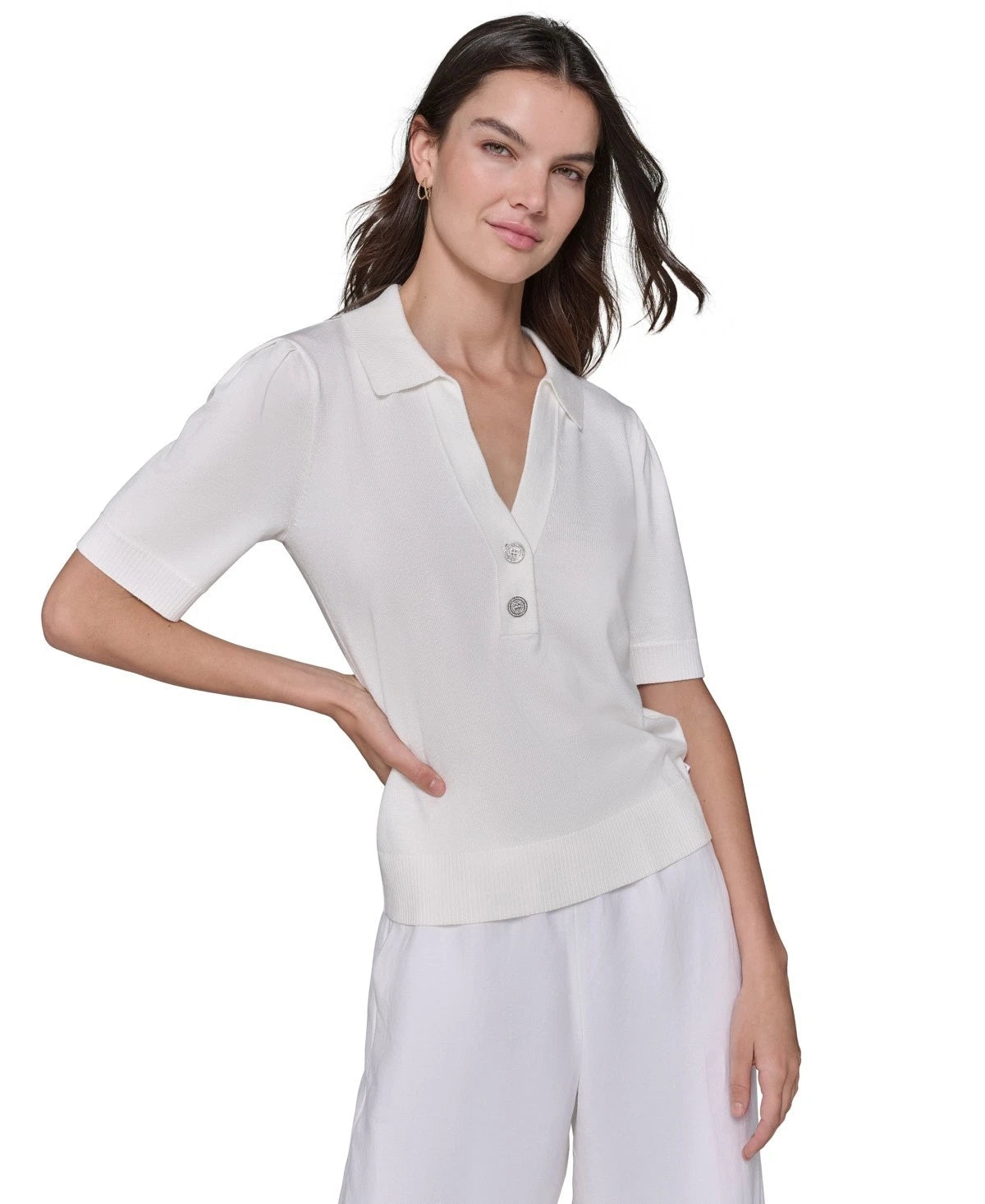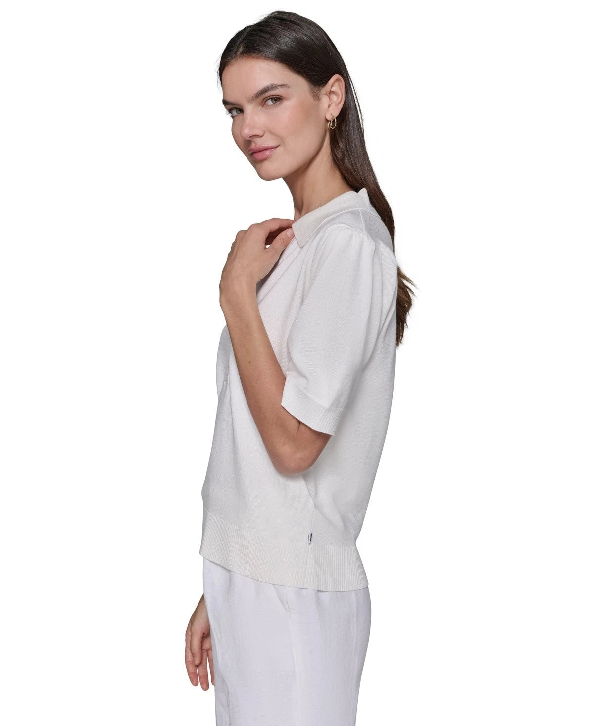 KARL LAGERFELD PARIS Women's Short-Sleeve Polo Sweater Ivory Size S MSRP $79