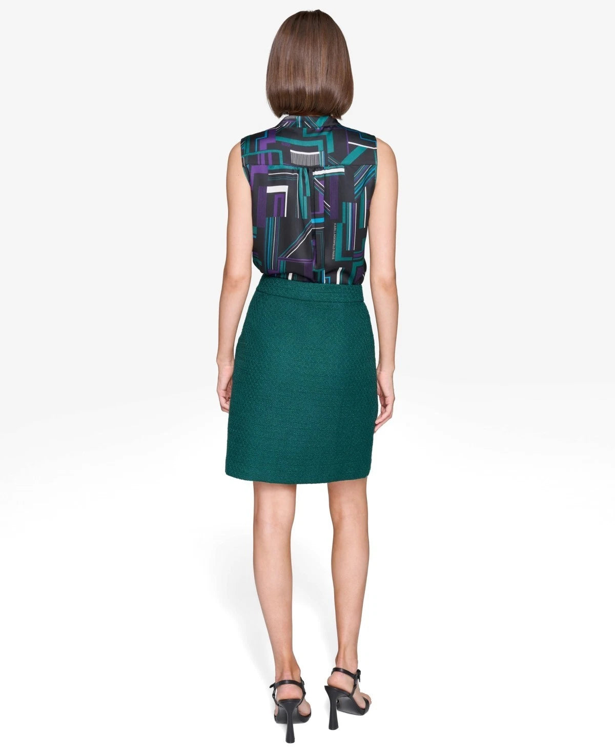 KARL LAGERFELD PARIS Women's Tweed Mini Skirt Green Size 12 MSRP $109