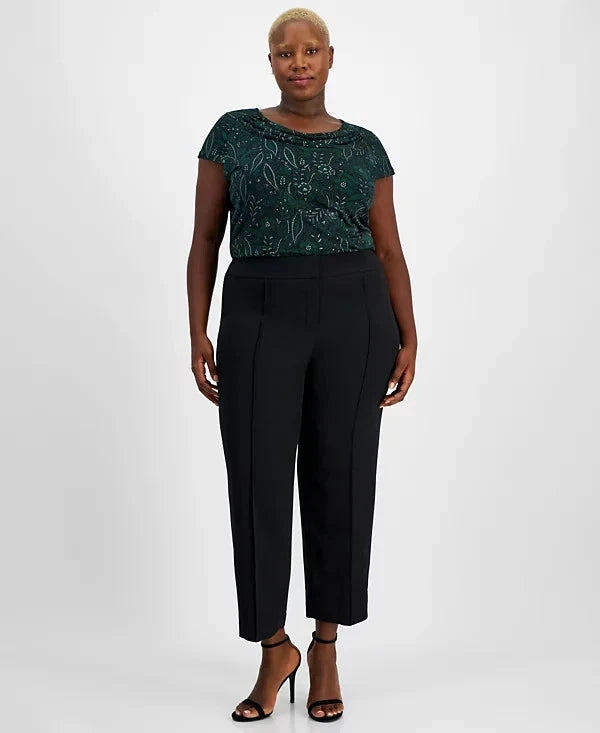 Kasper Plus Size 22W Straight-Leg Pants Black MSRP $89