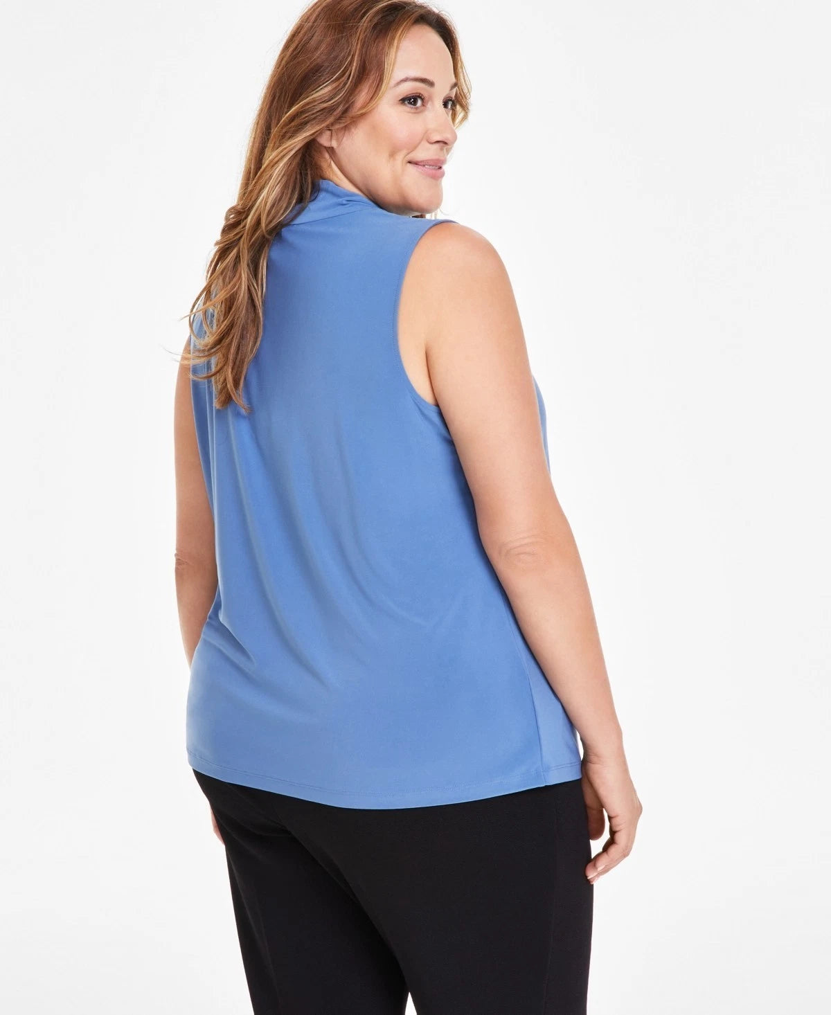 Kasper Plus Size Knot-Front Sleeveless Knit Top Blue Size 3X MSRP $59