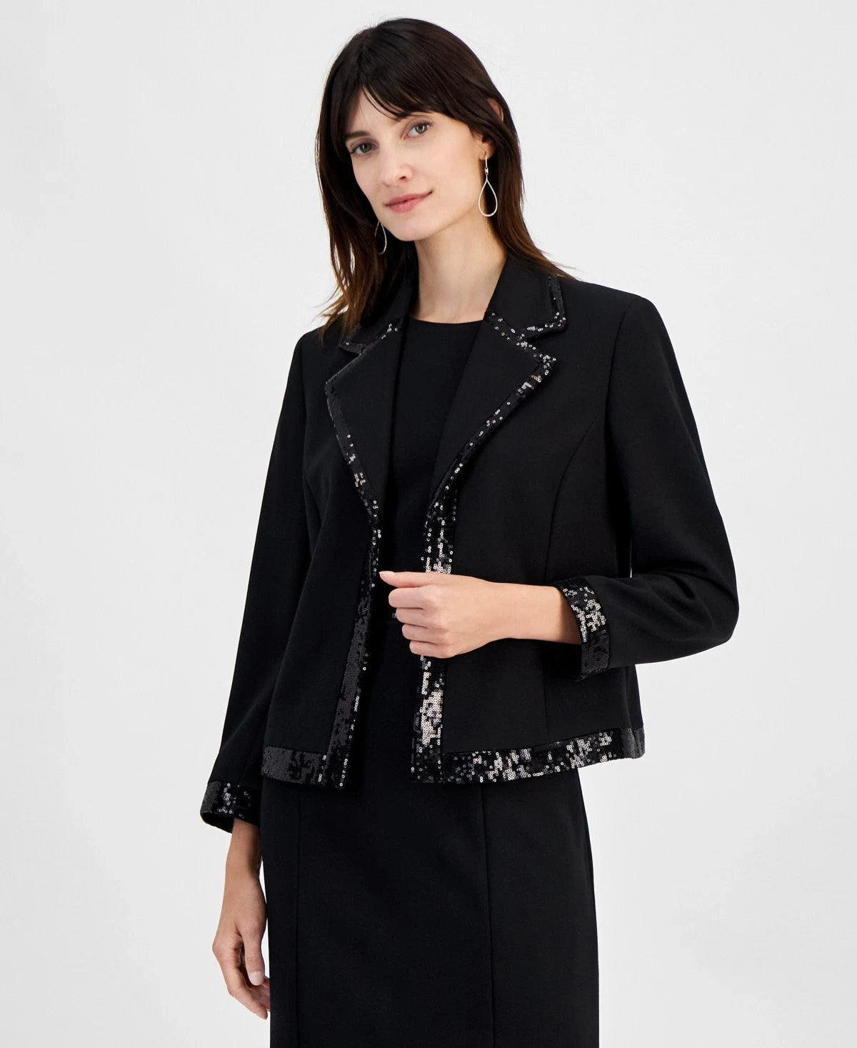 Kasper Women's Sequin Tipped Open-Front Blazer Black Size 2P MSRP $149