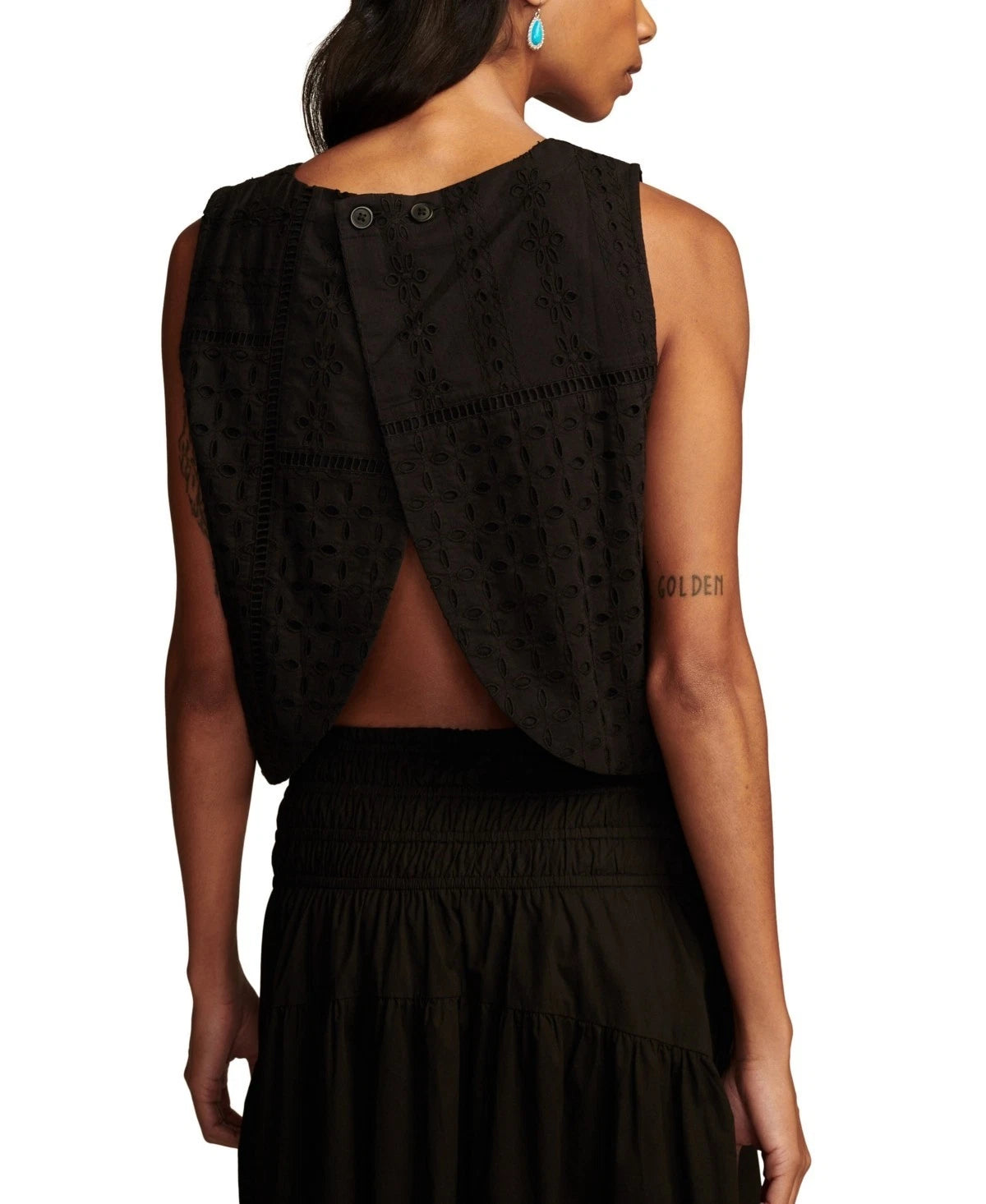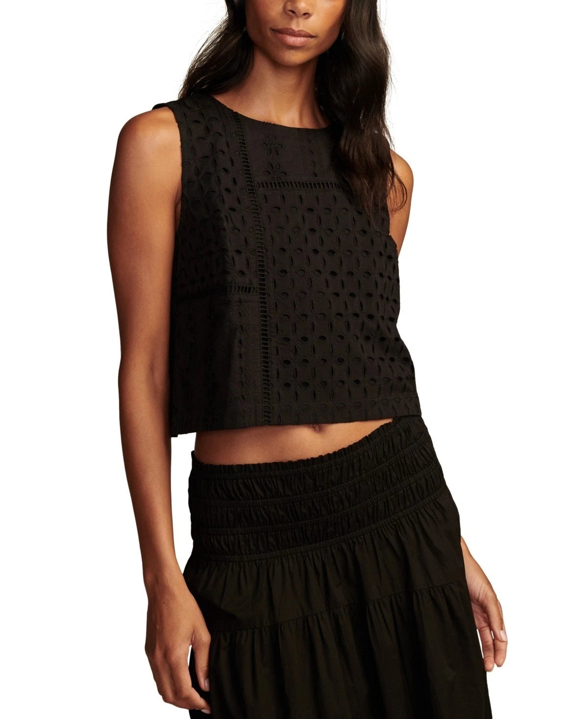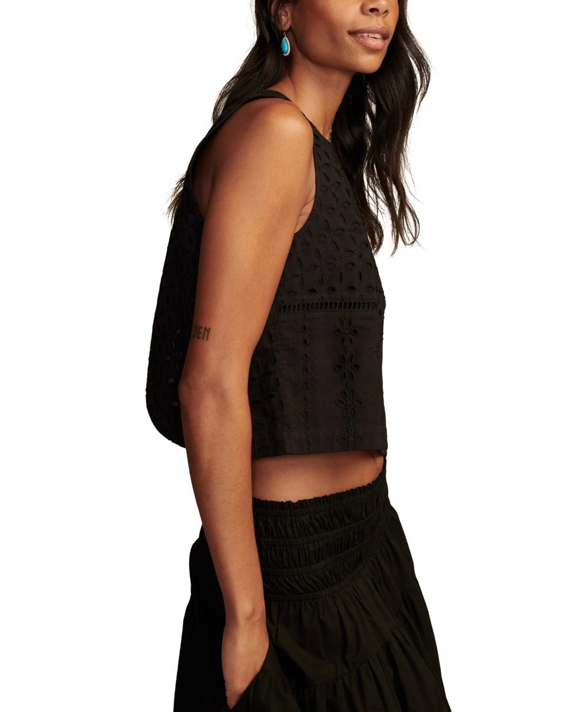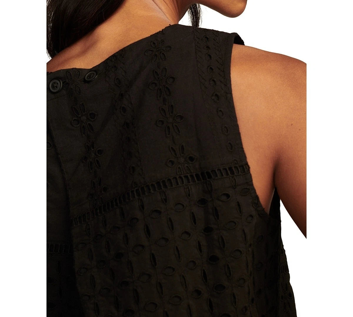 Lucky Brand Women's Schiffli Eyelet Sleeveless Top Black Size 2XL MSRP $70