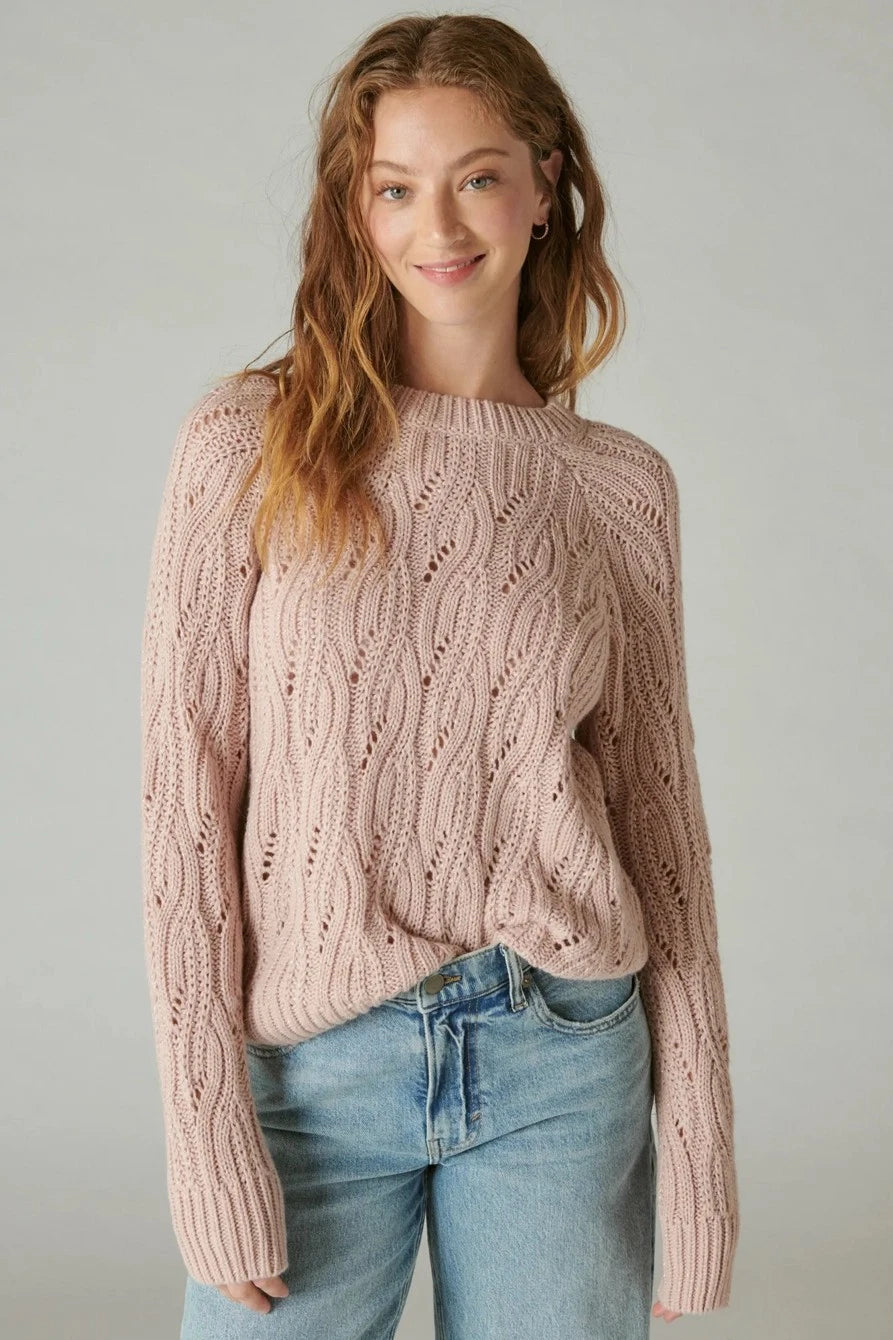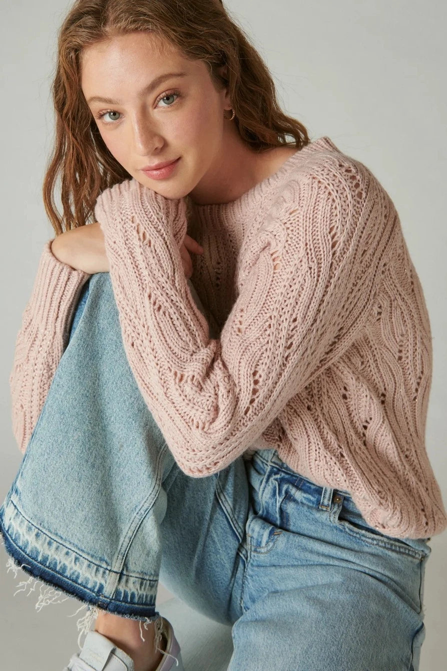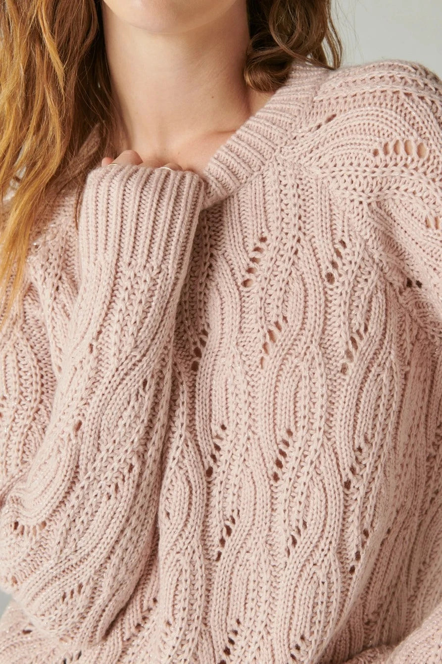 So pretty and versatile for many occasions, the Shine sweater from Lucky Brand features a shimmering cable knit, making it a must-have style for cool-weather days.