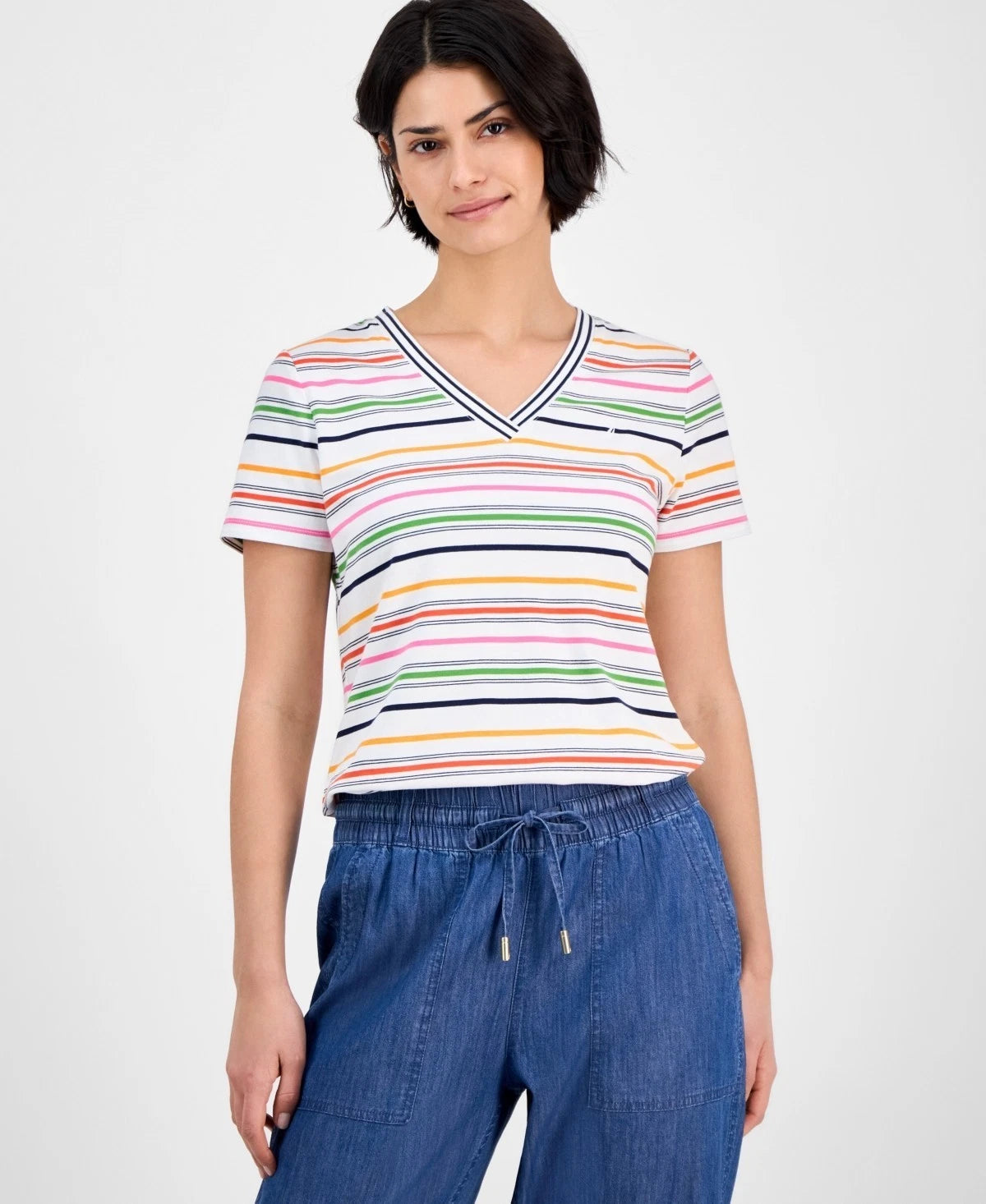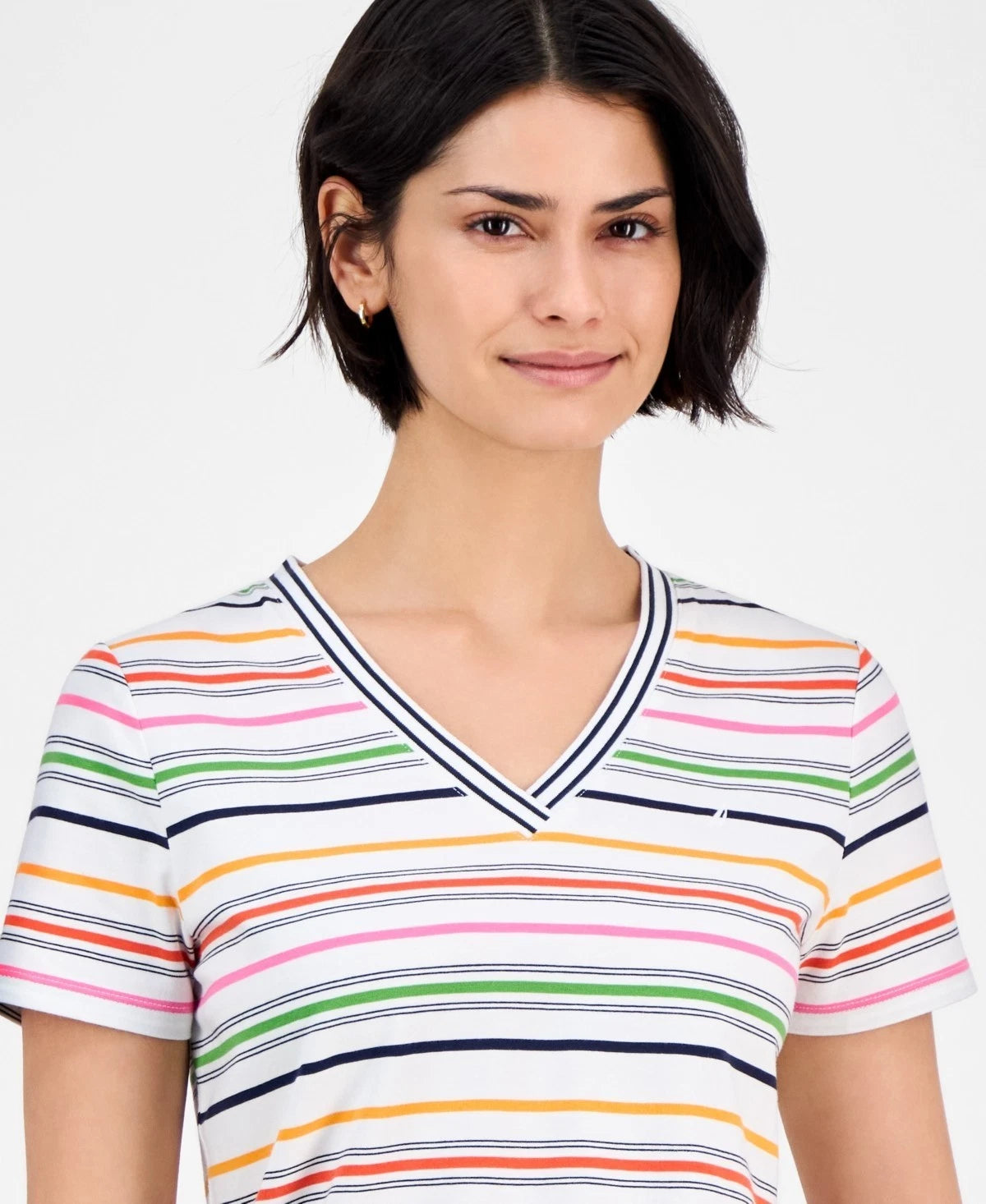 Keep things casual with this striped V-neck top from Nautica Jeans.