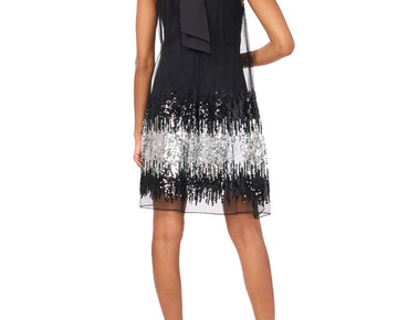 CeCe Women's Sequined Mesh Halter-Neck Shift Dress Black Size 4 MSRP $169