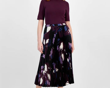 Anne Klein Women's Pleated Pull-On Skirt Purple Black Size XL MSRP $119Timeless elegance is yours in this pleated pull-on midi skirt from Anne Klein.*Features** Pulls on** Unlined** Polyester, elastane** Machine...