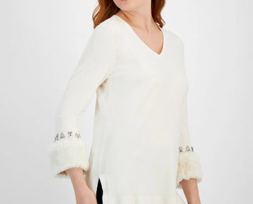 Anne Klein Women's Faux Fur Trim Sweater Ivory Size XL MSRP $129Dazzle at the next office event in this festive Anne Klein sweater, with stand-out faux fur and rhinestone-embellished cuffs.*Features**...