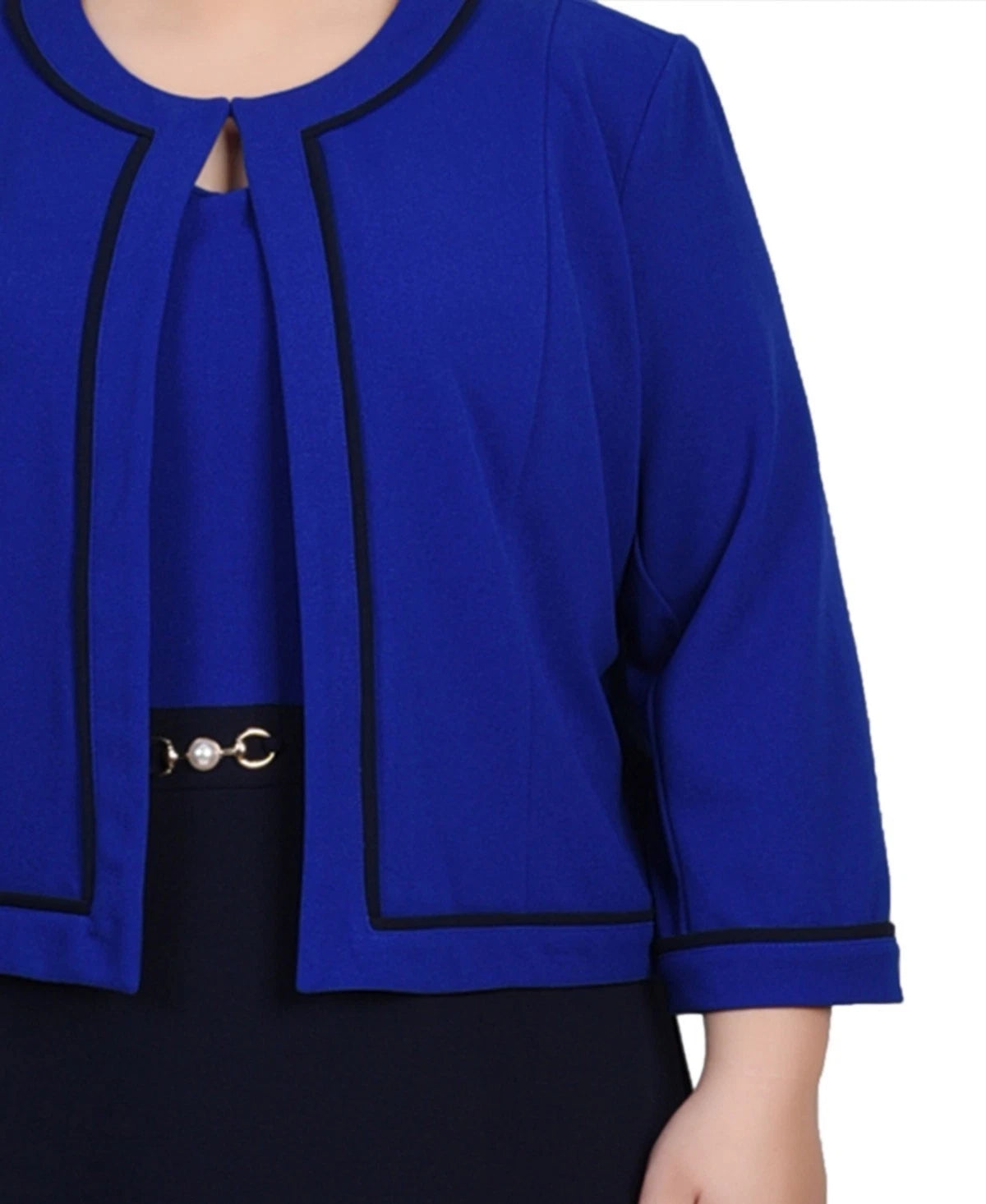 NY Collection Plus Size 3/4 Sleeve Jacket + Dress, 2 Piece Set Blue Size 18W