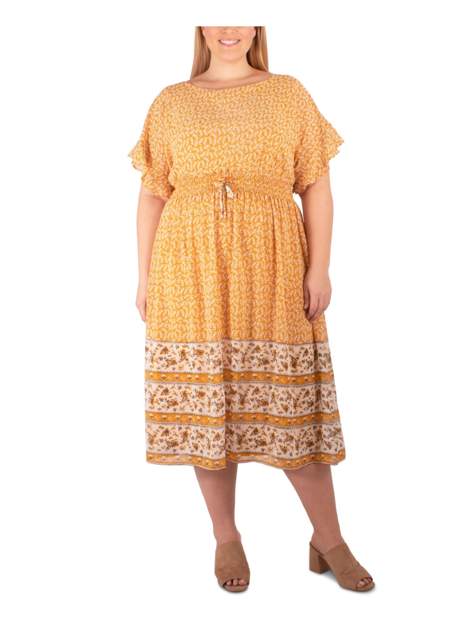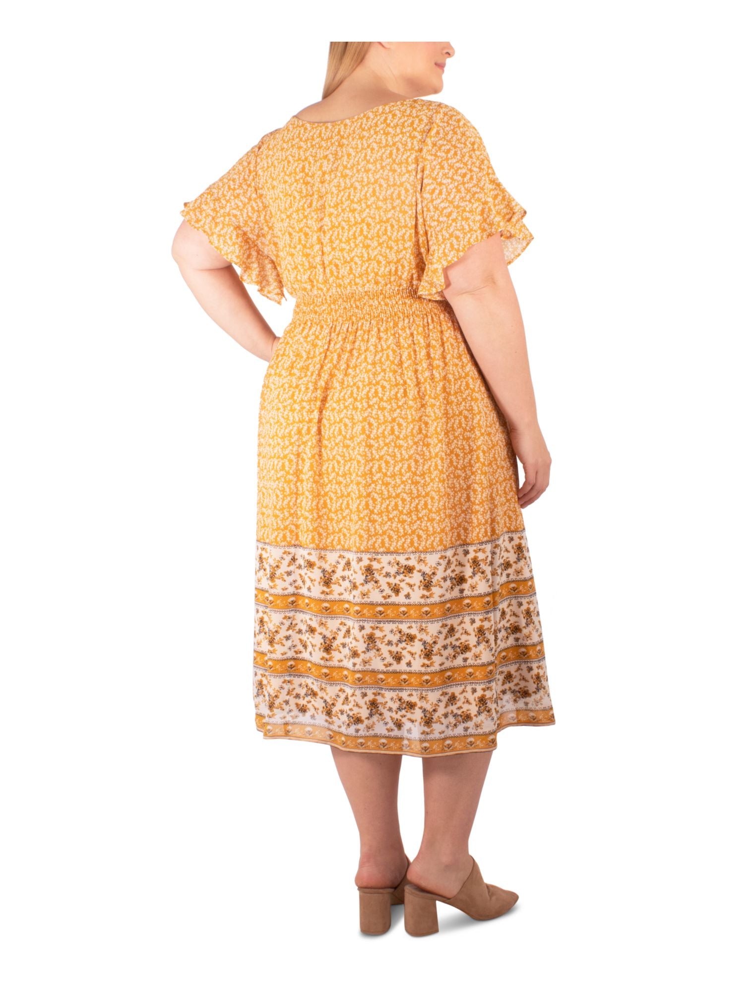 NY COLLECTION Womens Yellow Short Sleeve Below The Knee Dress Plus Size 2X