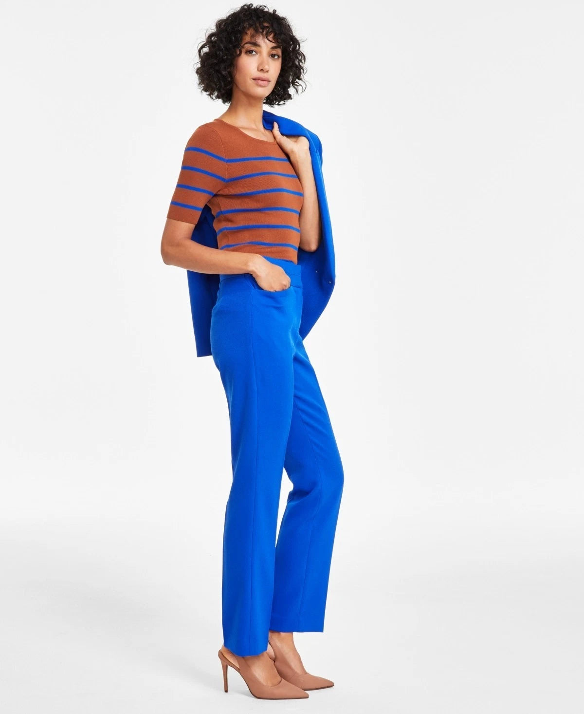 ** Slant pockets at hips