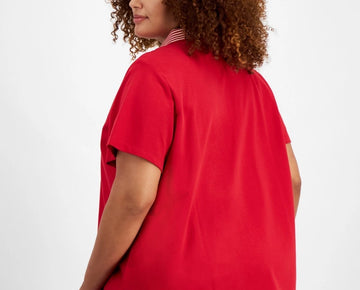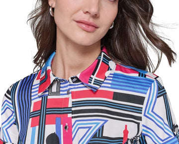 Tommy Hilfiger Women's Cotton Gingham Roll-Tab Shirt Pink Size M MSRP $70