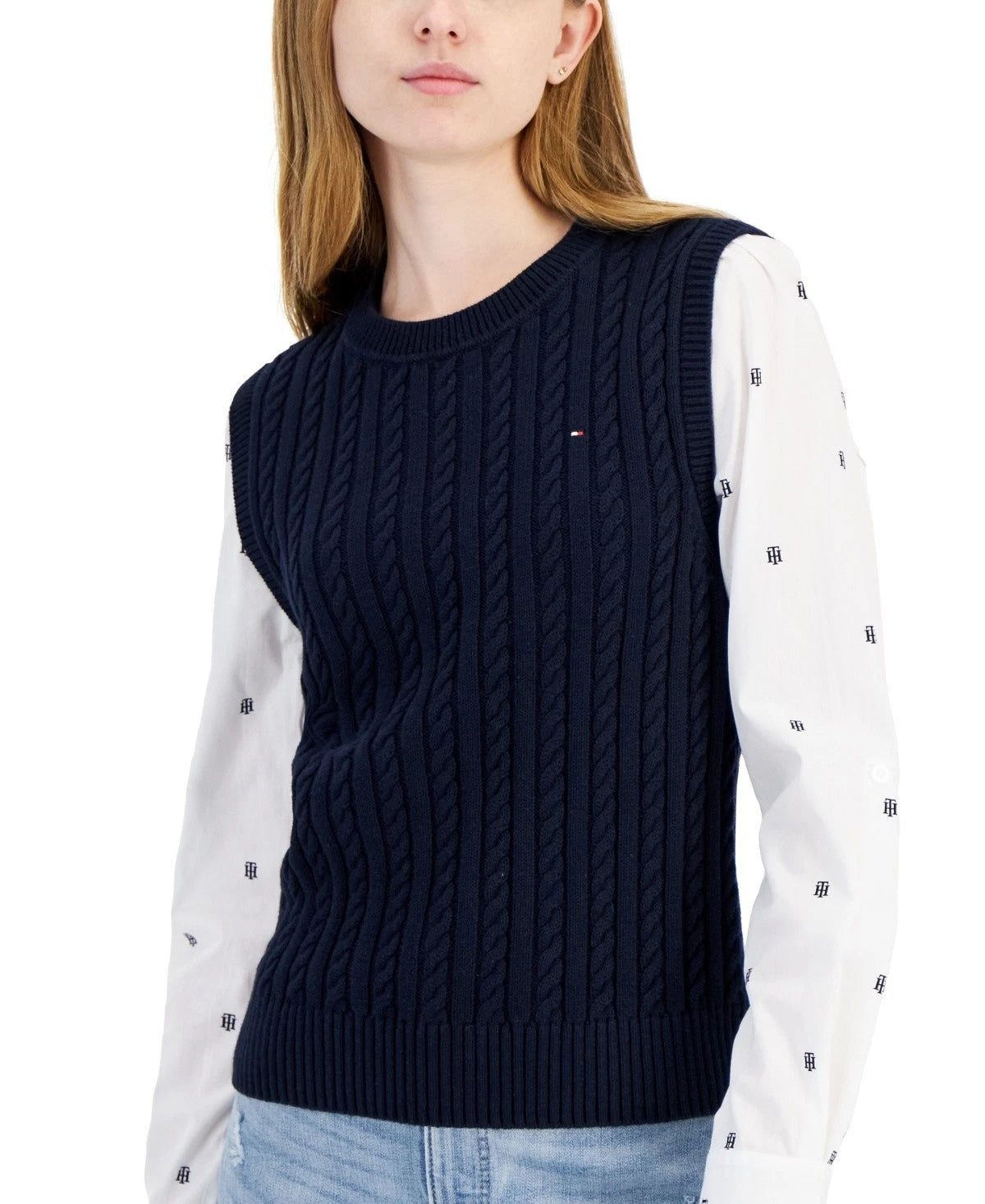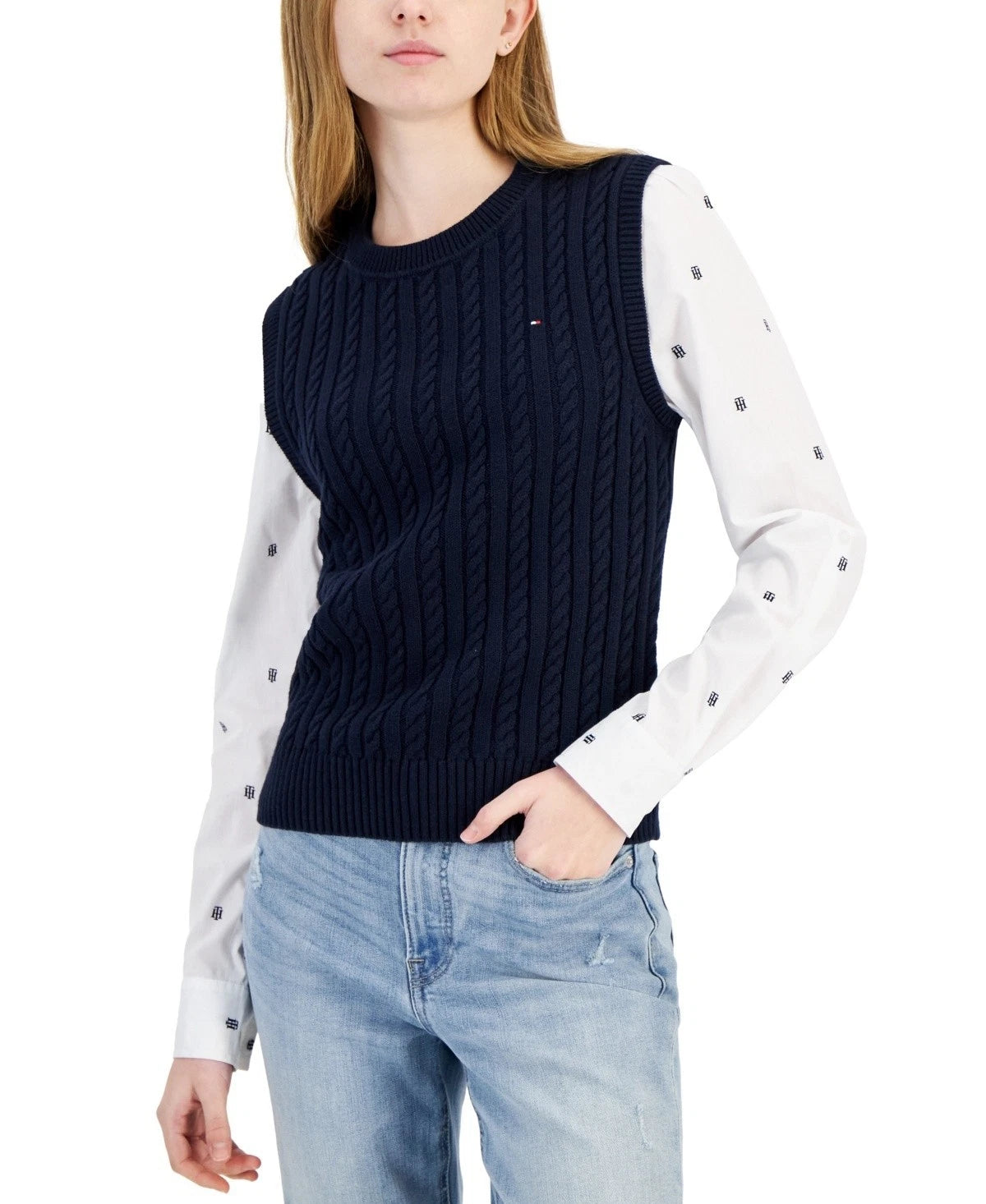 Tommy Hilfiger Women's Layered-Look Sweater Vest Navy Size S MSRP $90