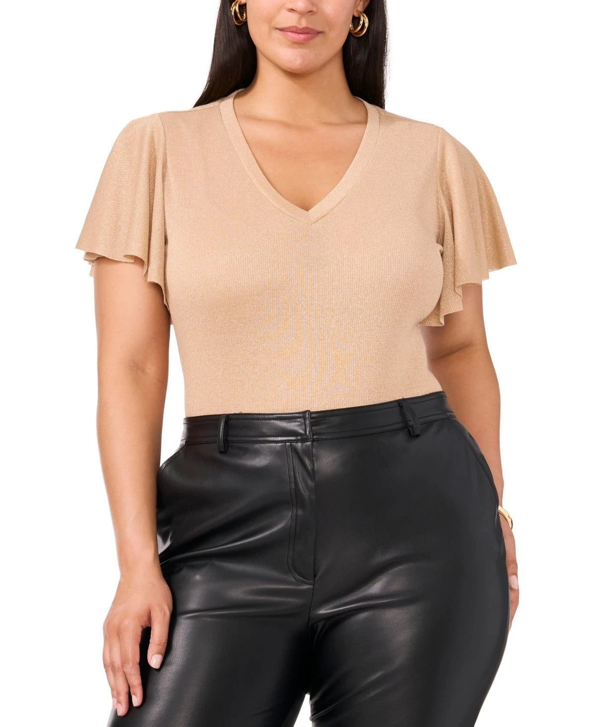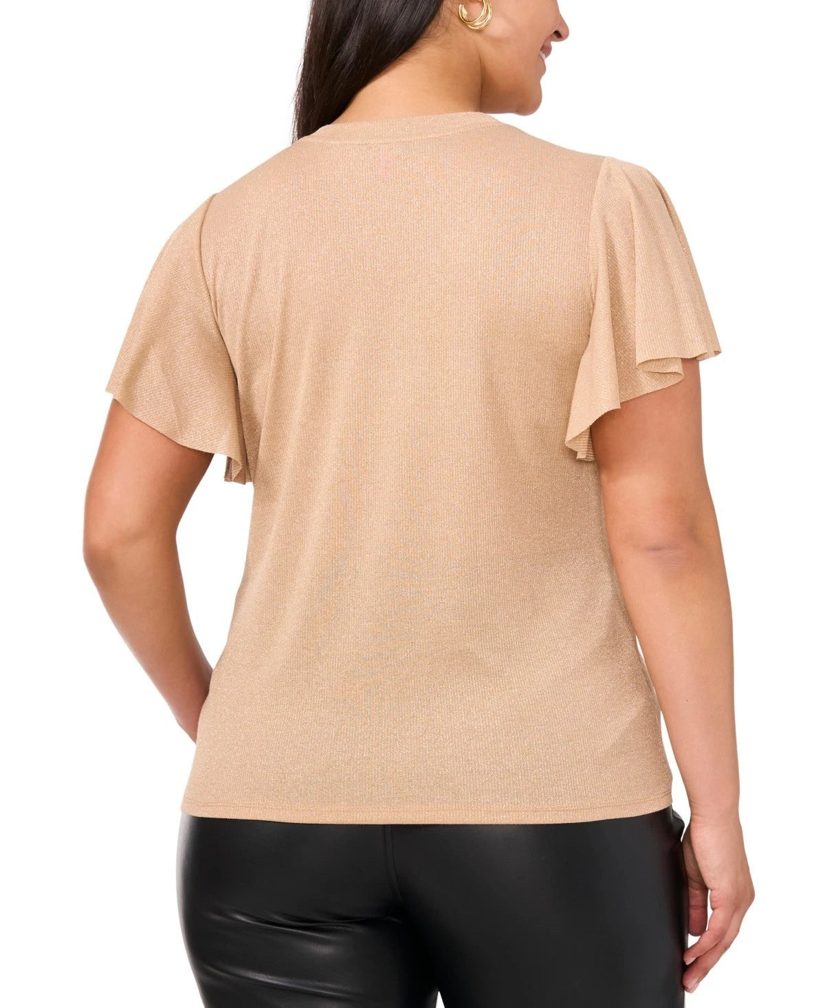 Go from day to night in effortless style with this plus size metallic top from Vince Camuto designed with fluttery sleeves. ABOUT THE BRAND: Vince Camuto is a globally renowned brand that embodies European styling. Detailed craftsmanship across the line embraces current trends while maintaining a classic aesthetic.