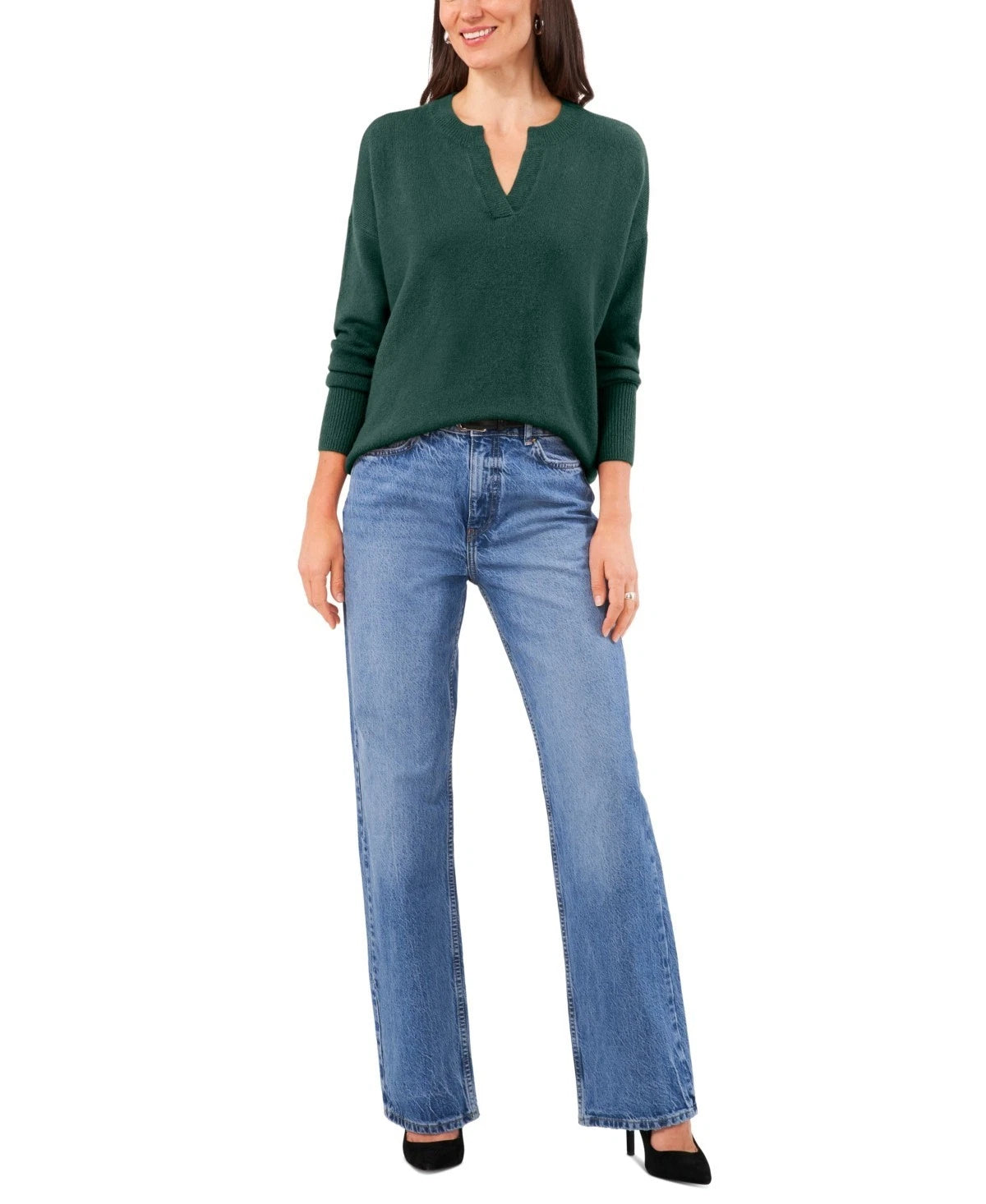 Vince Camuto Women's Cozy V-Neck Drop-Shoulder Sweater Green Size M MSRP $69